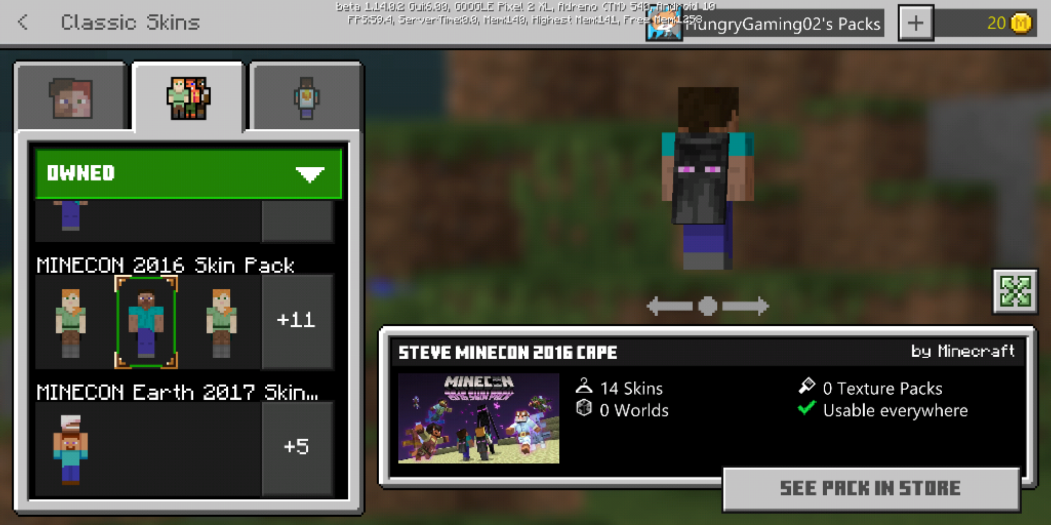 You see, on my computer those two skin packs do show the capes. I'm currently on the 1.13.0 release version, so Mojang must have done something in 1.14 that broke the capes. That's a new bug, not related to what you were originally reporting. A quick search found that this new bug has already been reported, see MCPE-54181.