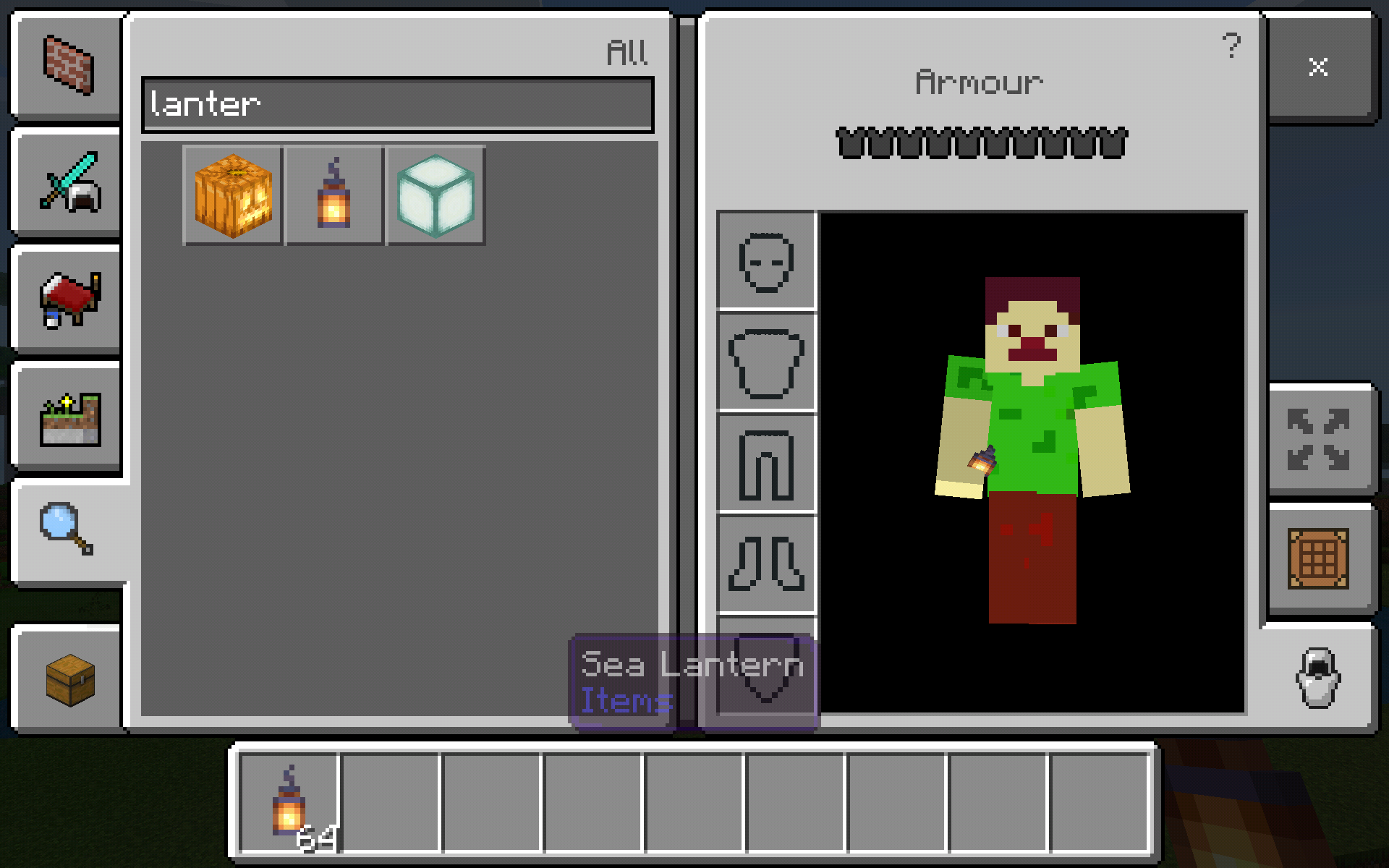 When you click on lantern it says sea lantern instead of lantern