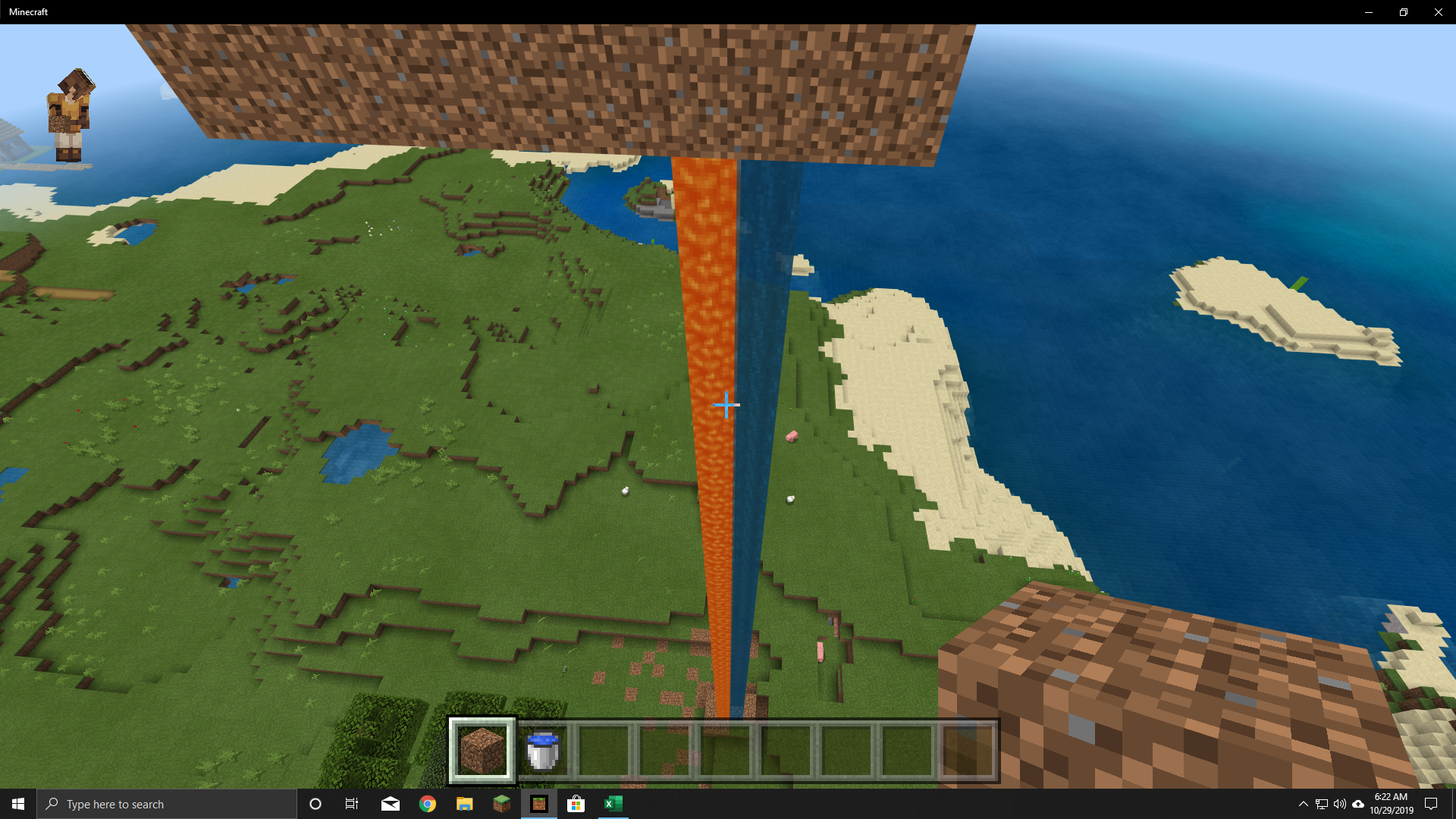 During attempts to make a cobblestone generator, a stream of just lava and just water were created, side by side, without cobblestone.