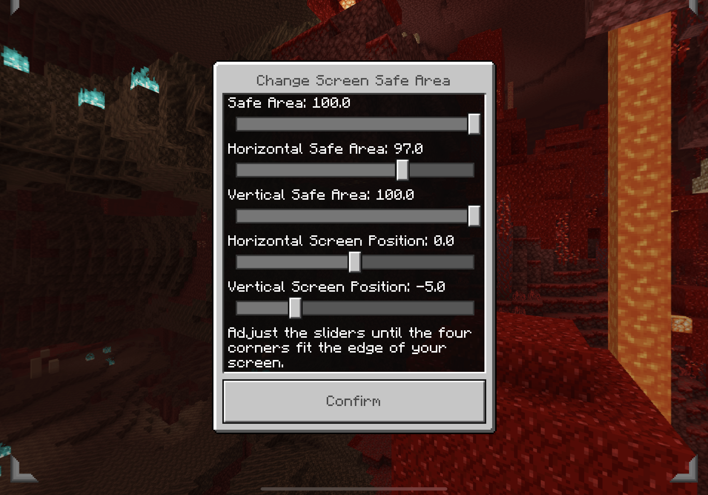 For reference, I am using this resource pack to customise the screen safe area more https://www.planetminecraft.com/texture-pack/adjustable-safe-zone-screen-bedrock-edition/