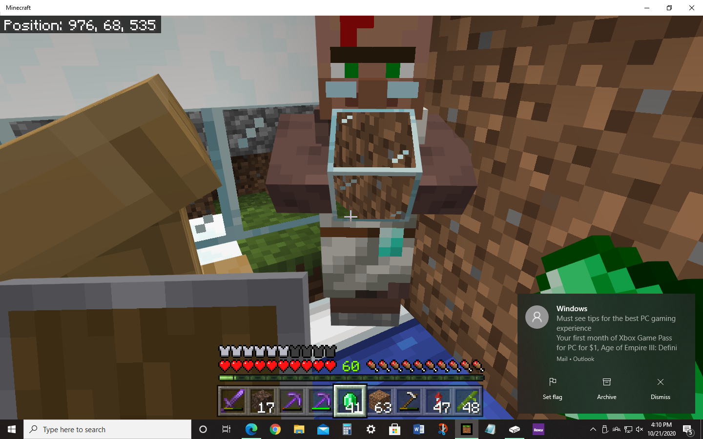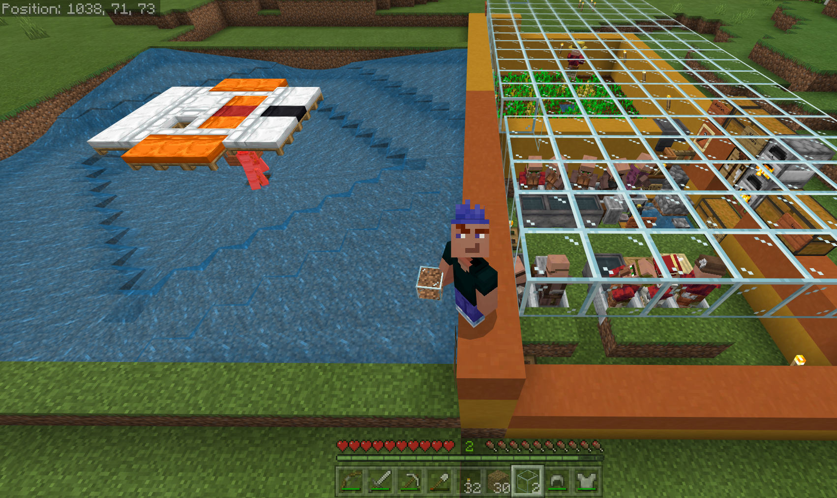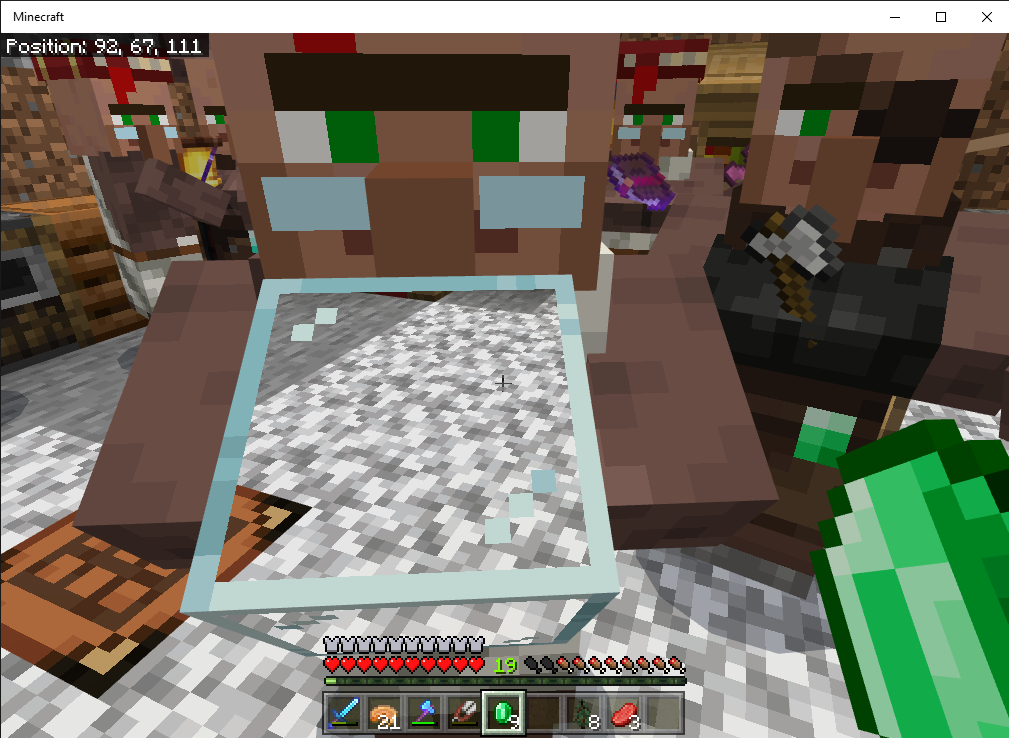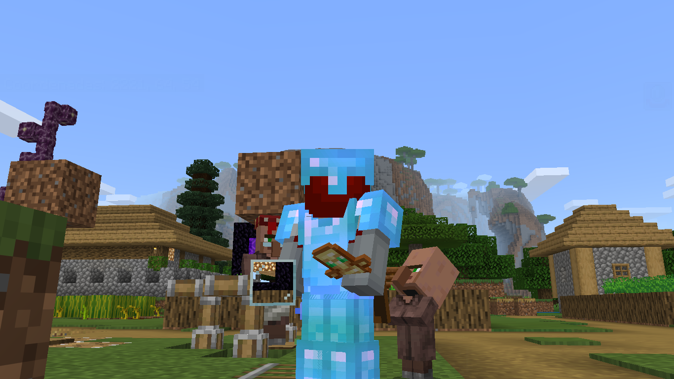 When the perspective is changed to a third person ahead and a glass block is placed in the hand, the block crosses the body of the character and also makes invisible entities with movement, such as dogs, villagers, also the movement of the portal of the nether, also pistons, and other blocks, animals such as donkey and horse are not affected