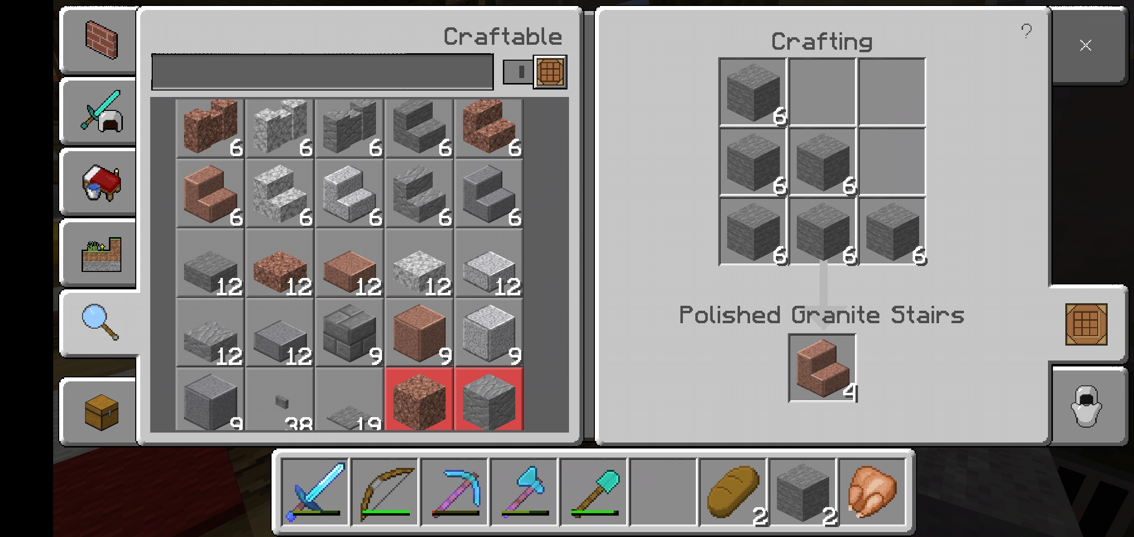 I put smooth stone into the crafting table and it let me turn it into all the other type of stones and its variants like the walls and polished variants.I'm aware you can turn stone into the other types of stones with a specific recipe but I didnt need quarts or anything.