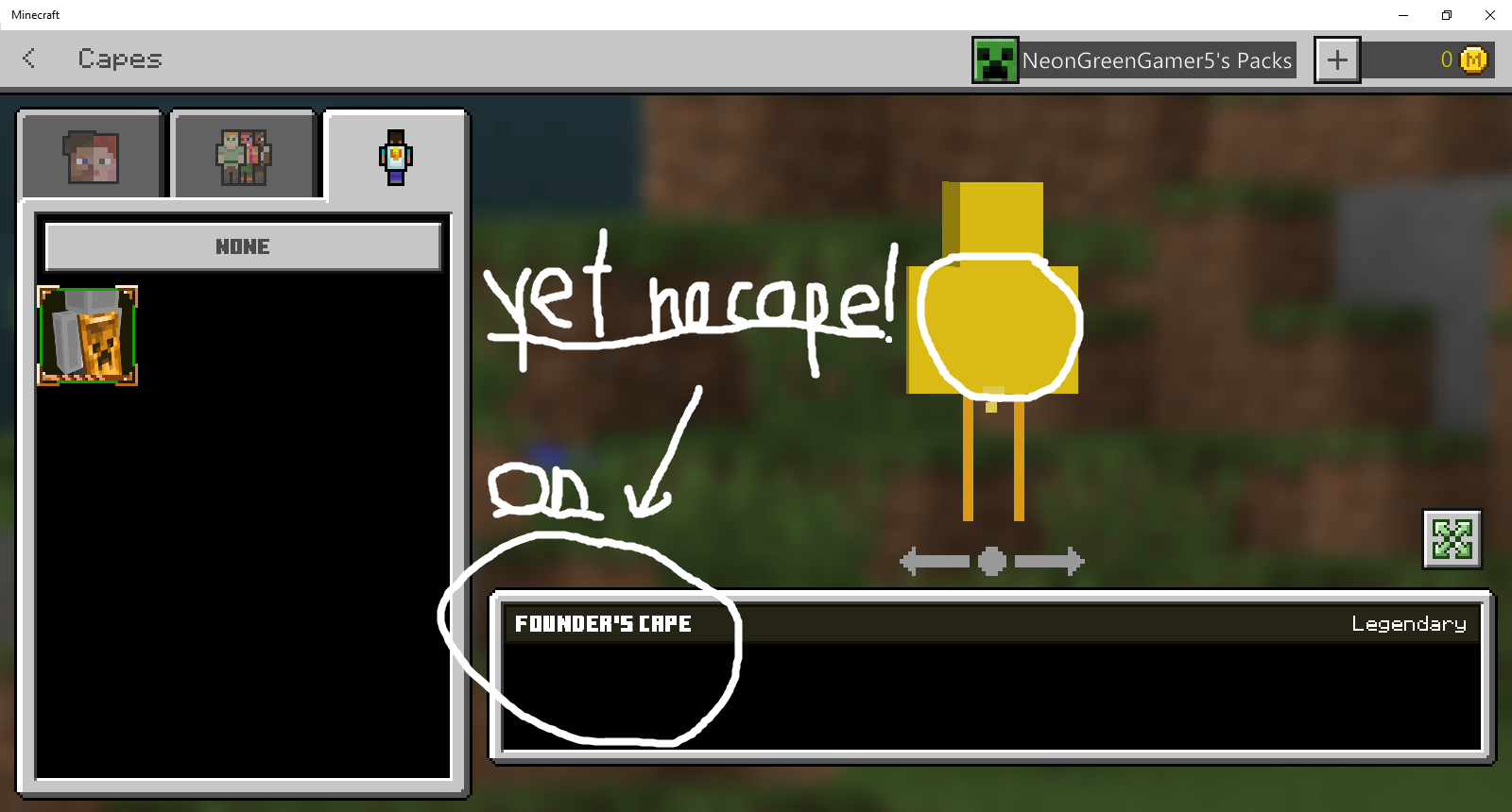 Today, I discovered the new skin options. I tested and tried out new skins and designs. The capes were able to go onto the default skins (Steve and Alex) but oddly enough, not mine! I'm not sure if this was intended or a huge mistake but, can you at leastΒ try to fix it?
