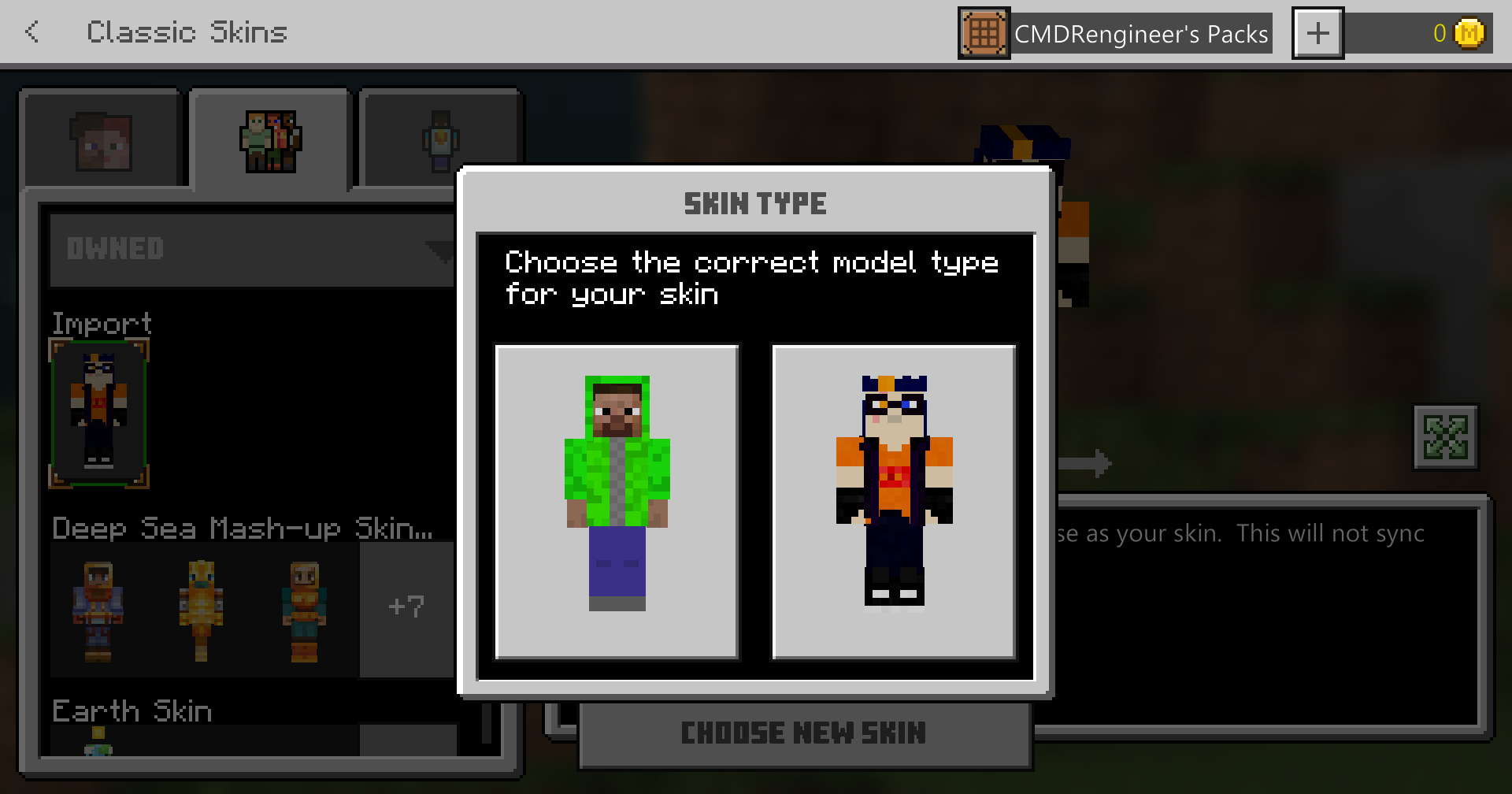 I was playing on a realm with a friend when we meet we saw that for my POV he was wearing my skin but for him it was his skin. I log off to see if it was a bug but I log back on I was wearing his skin and the same as him too for a bit then he change to my skin but he did not change it. I log off and back on me and him as back as our skin but in the pause menu it was showing as his skin. I went into the character creator it was showing as his skin I went to import my skin file but it was show as him still