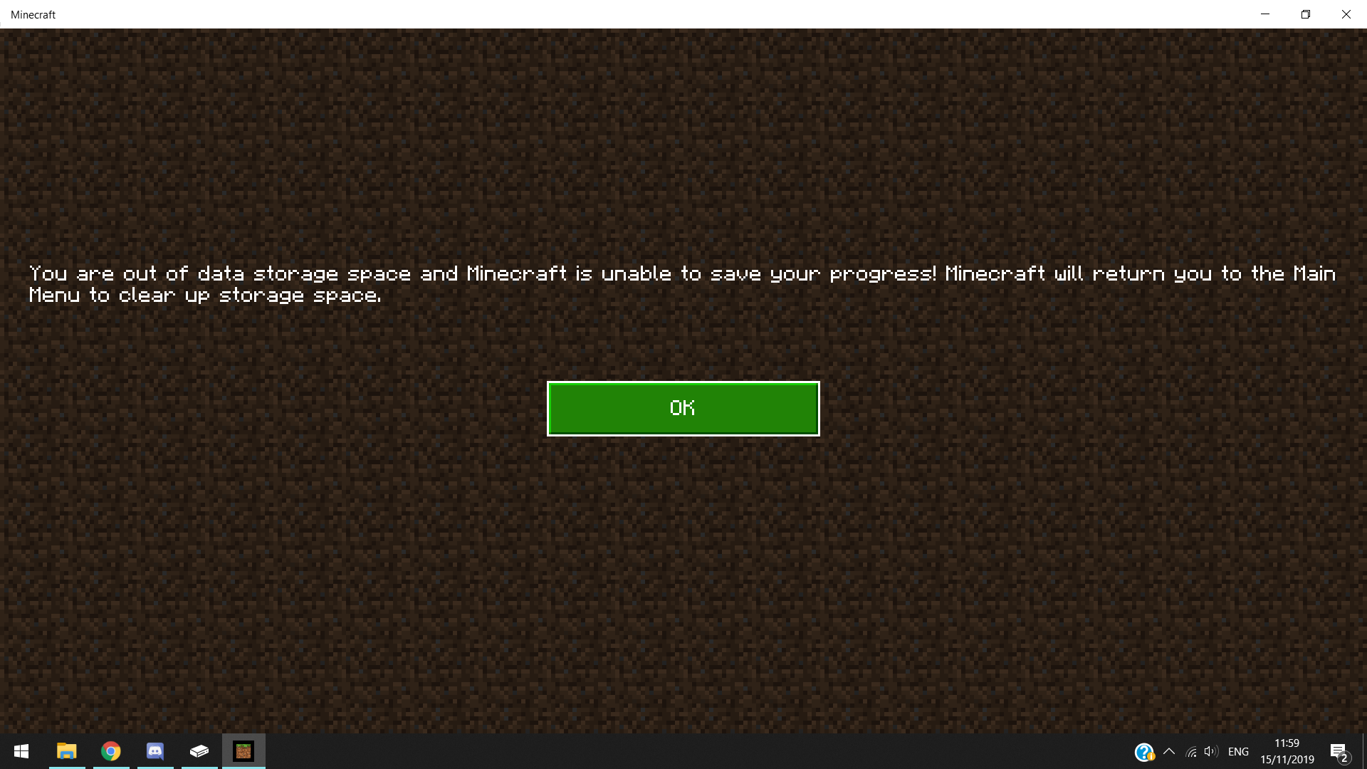 I’ve been battling this same issue on Nintendo Switch for quite some time. I have 16GB free and it thinks there’s little space left? I’ve deleted a few worlds, packs and archived some games yet it still runs out of space. Restarting the game gets me back into the world but at some random time it will come up again.