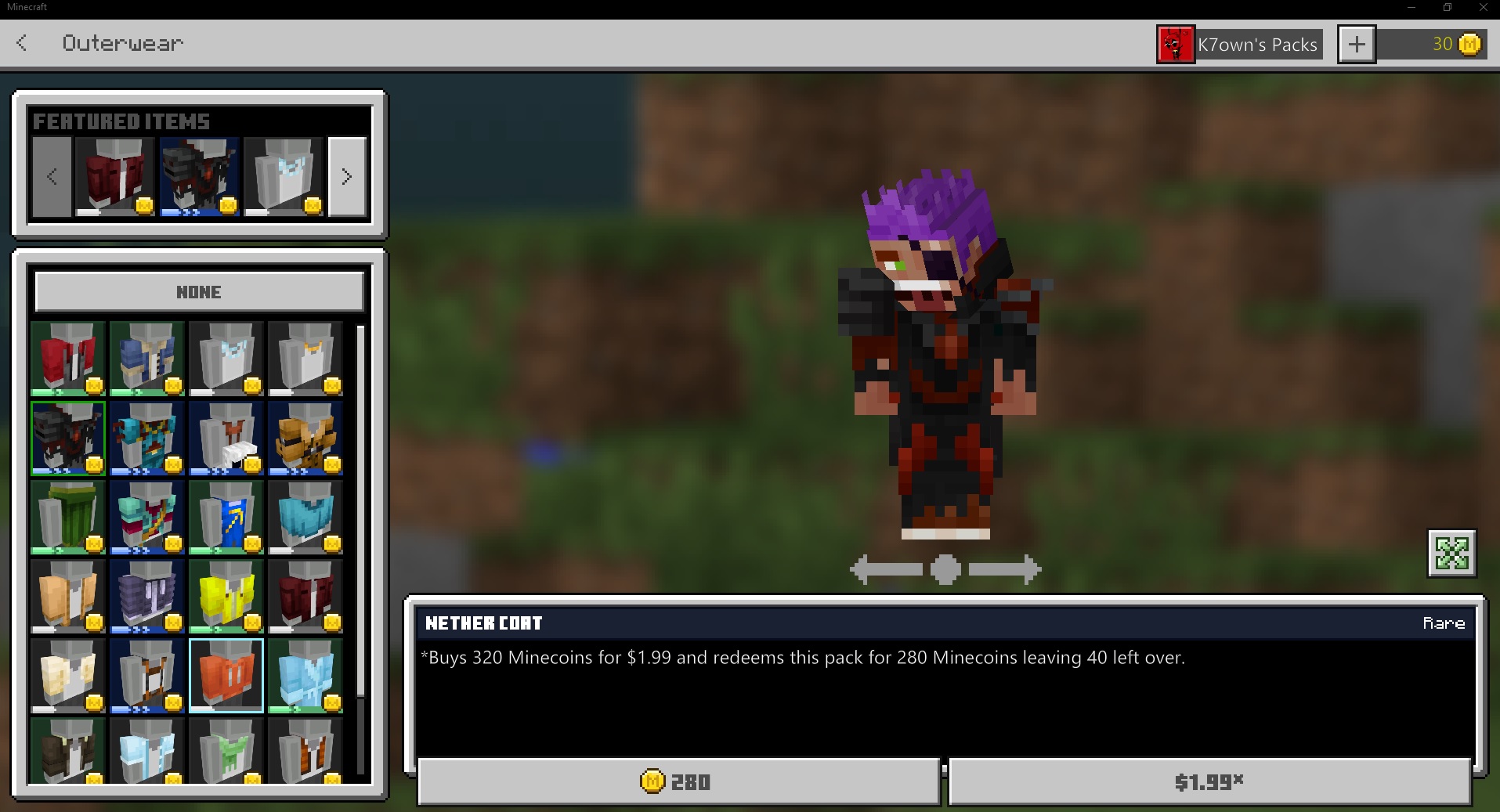 When trying to load my custom character I receive an error. This happens on any version of Bedrock edition that I try to load. Windows 10, Xbox One, & Minecraft Earth. This issue has also removed me of a customization item I had purchased with coins. That item being the Nether Coat.