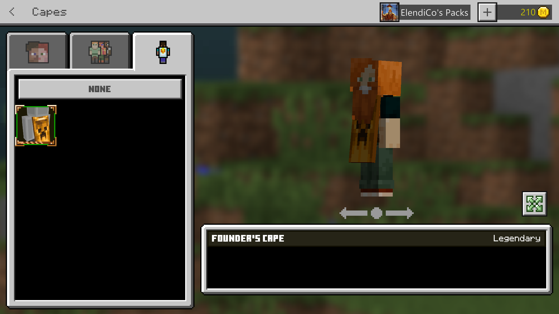 The Founder's cape displays as a bib on the front of the player regardless of whether you are using a Character Creator skin, a custom skin, a marketplace skin or steve. This is consistent over realms and local multiplayer: when a player is wearing a cape, it is displayed for both parties as in front of the player.