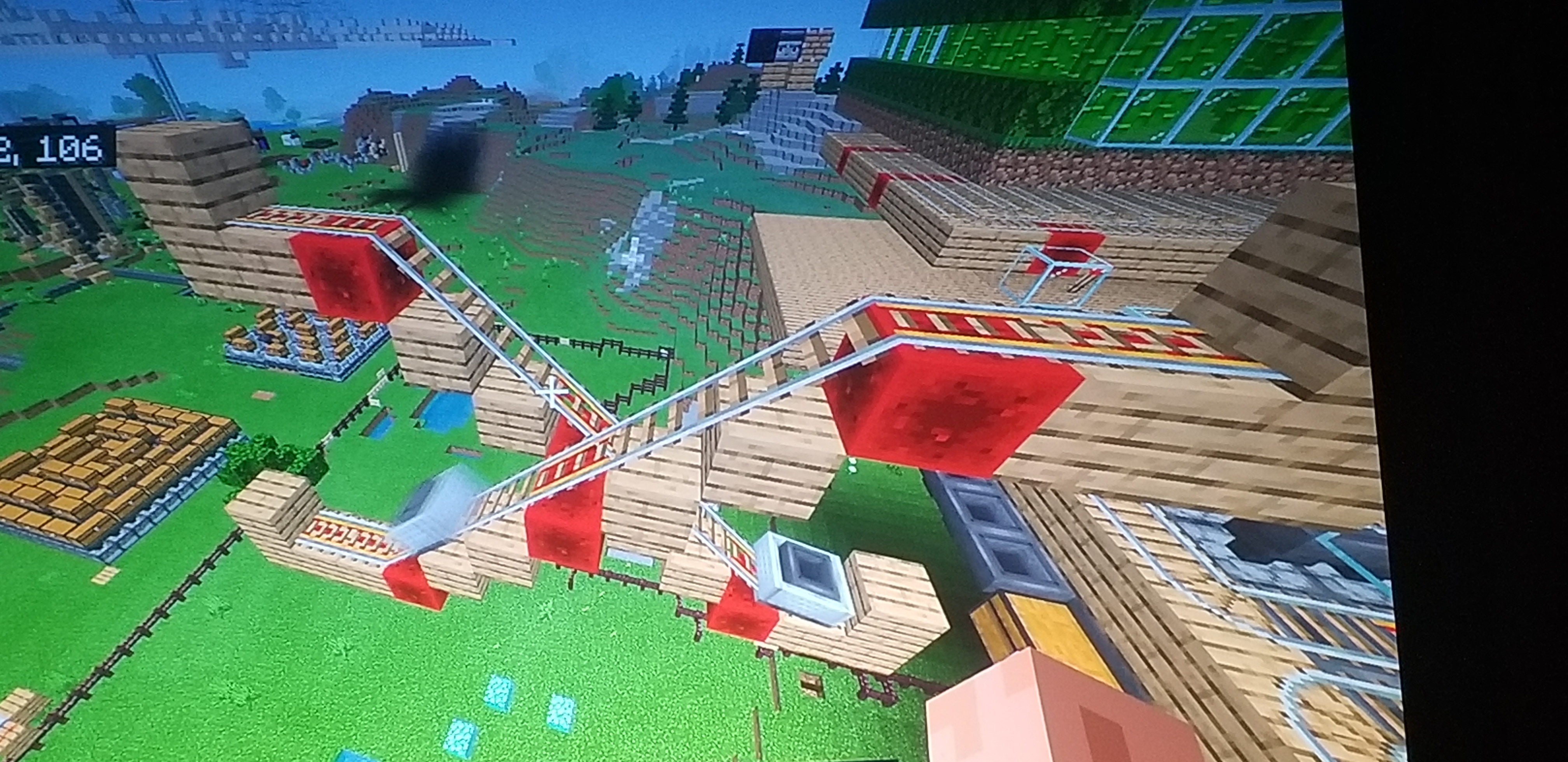 The image above is a very simple way to observe this bug. Fill each hopper with a different stack of items and you can watch them transfer from one hopper to the other. Make sure you make one rail a little longer than the other so they will eventually cross with the right timing.