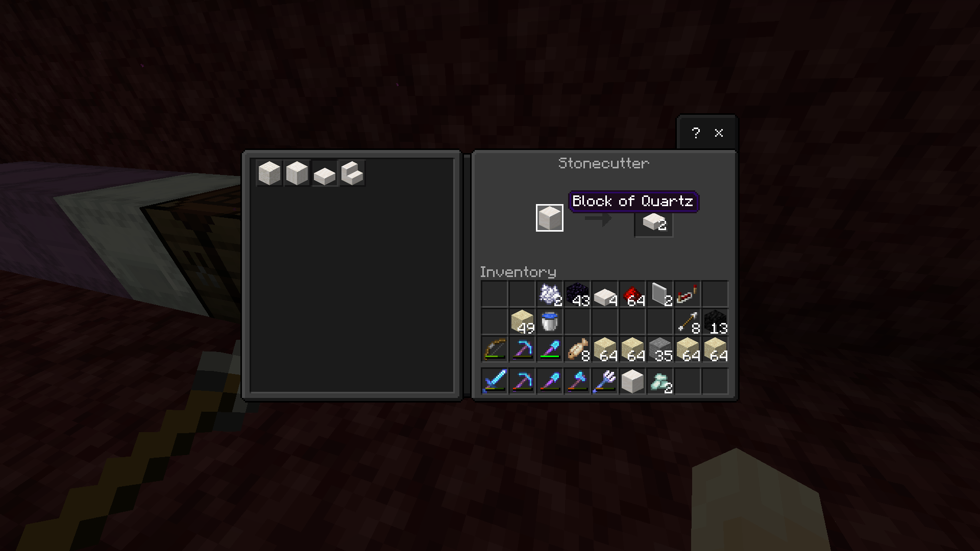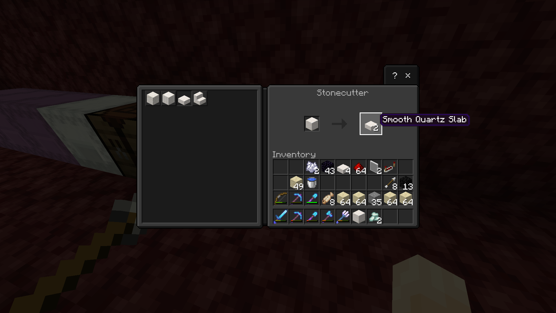 Attempting to craft slabs of Quartz Block in the Stonecutter yields Smooth Quartz Slab instead of the expected Quartz Slab. Quartz Stairs are not affected.