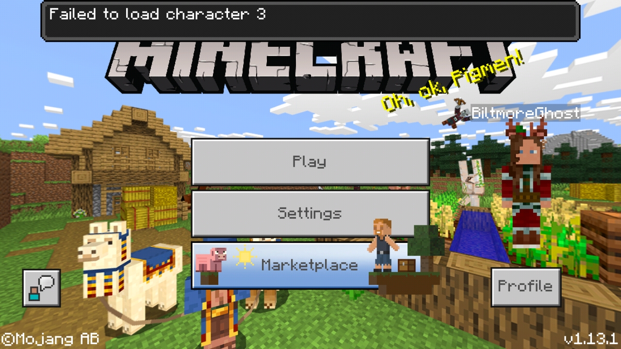 When I play Minecraft I get a popup saying "Failed to load character".