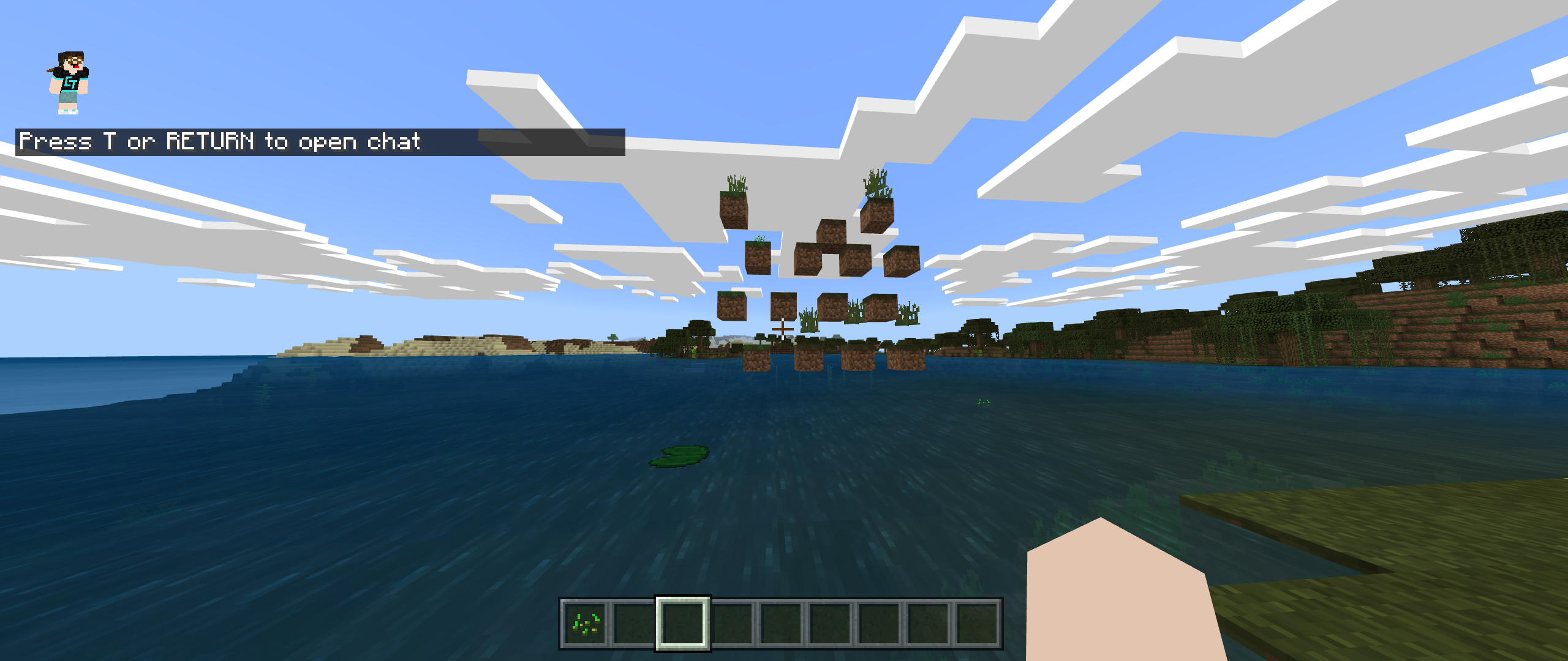 But now, near the same spot I saw the midair plants, now there is a grid of floating grass and grass blocks.