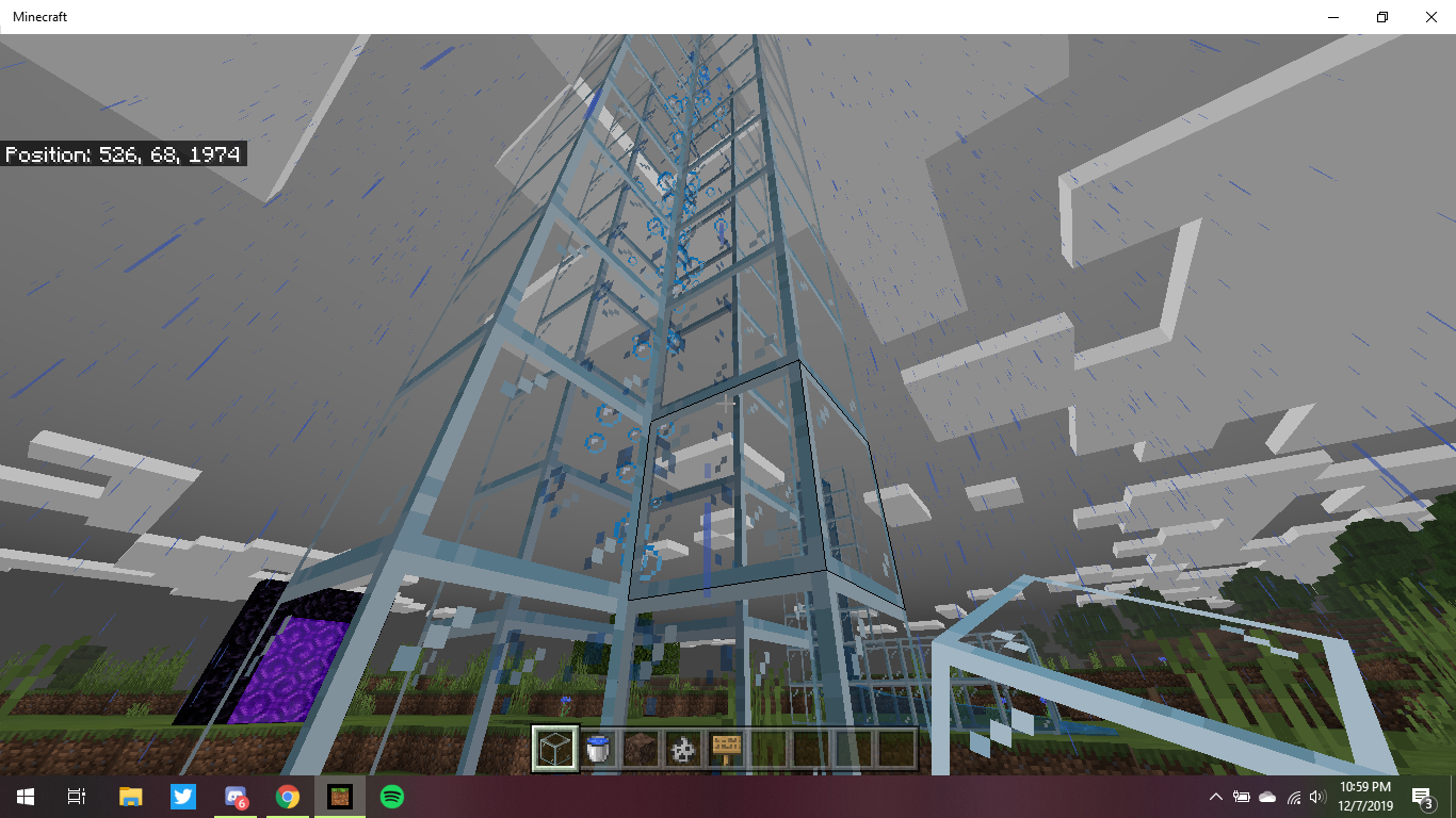 I was testing an elevator prototype using soul sand and water in Creative mode. When I placed the soul sand below the water column, the normal water texture became invisible as seen in the included screenshots. The block functioned as normal, this appears to only be a visual bug.