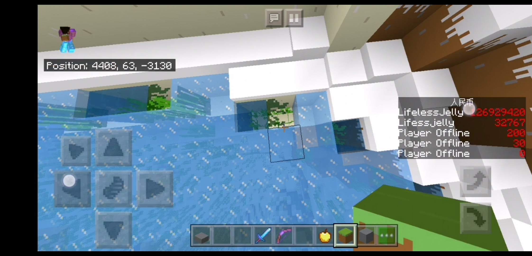 Water in snowy biomes can sometimes inherit the seagrass texture on it if it has a seagrass block in it
