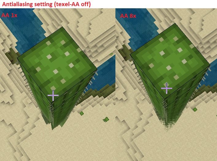 When nearly directly above cactus, the side texture seems to disintegrate. Hard to describe, but screenshot attached.