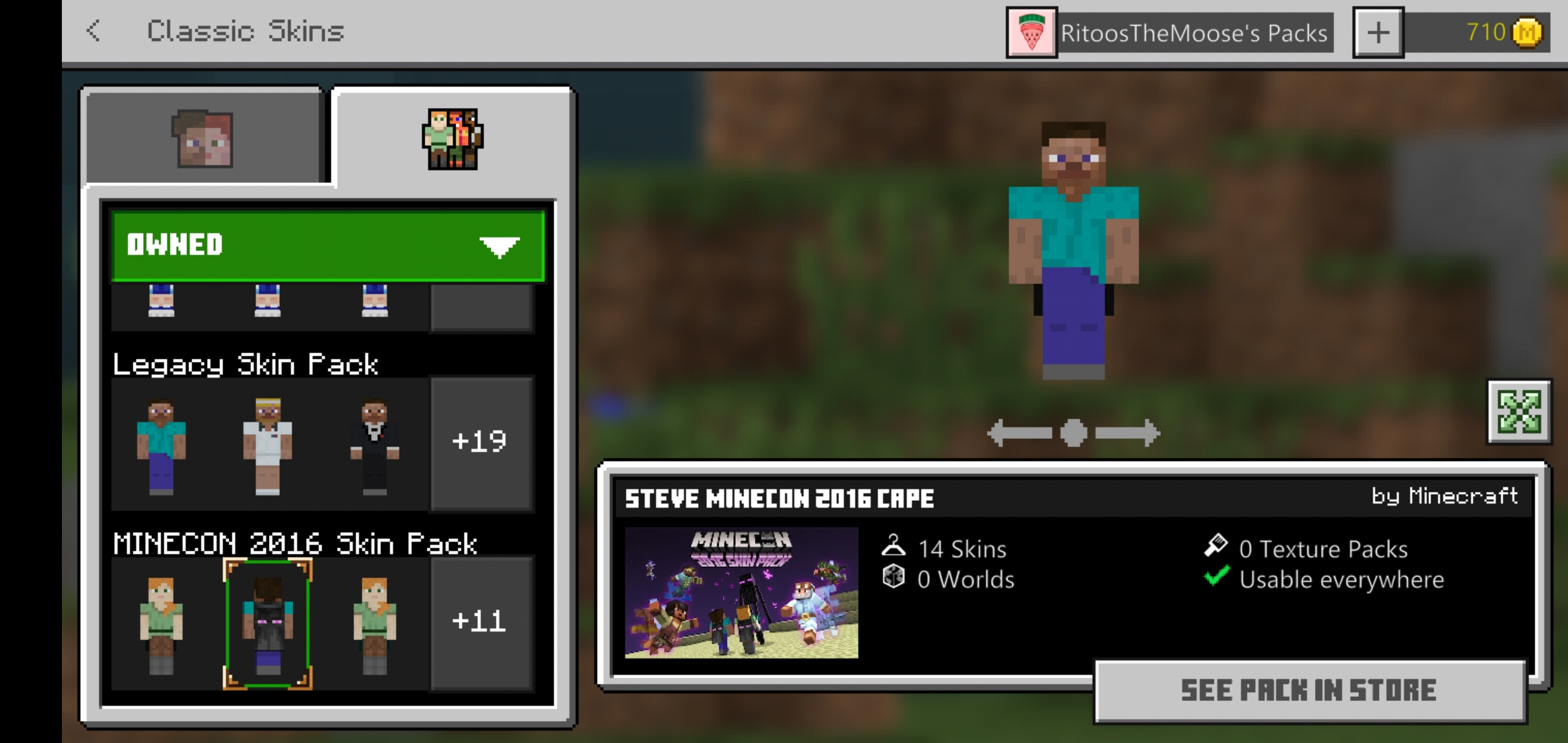 When I went to change my character, i changes it to my one of my minecon 2016 skins and it says usable everywhere but when i went on my PS4 it says it failed to load the character and also the skin pack doesn't appear in my packs on PS4.