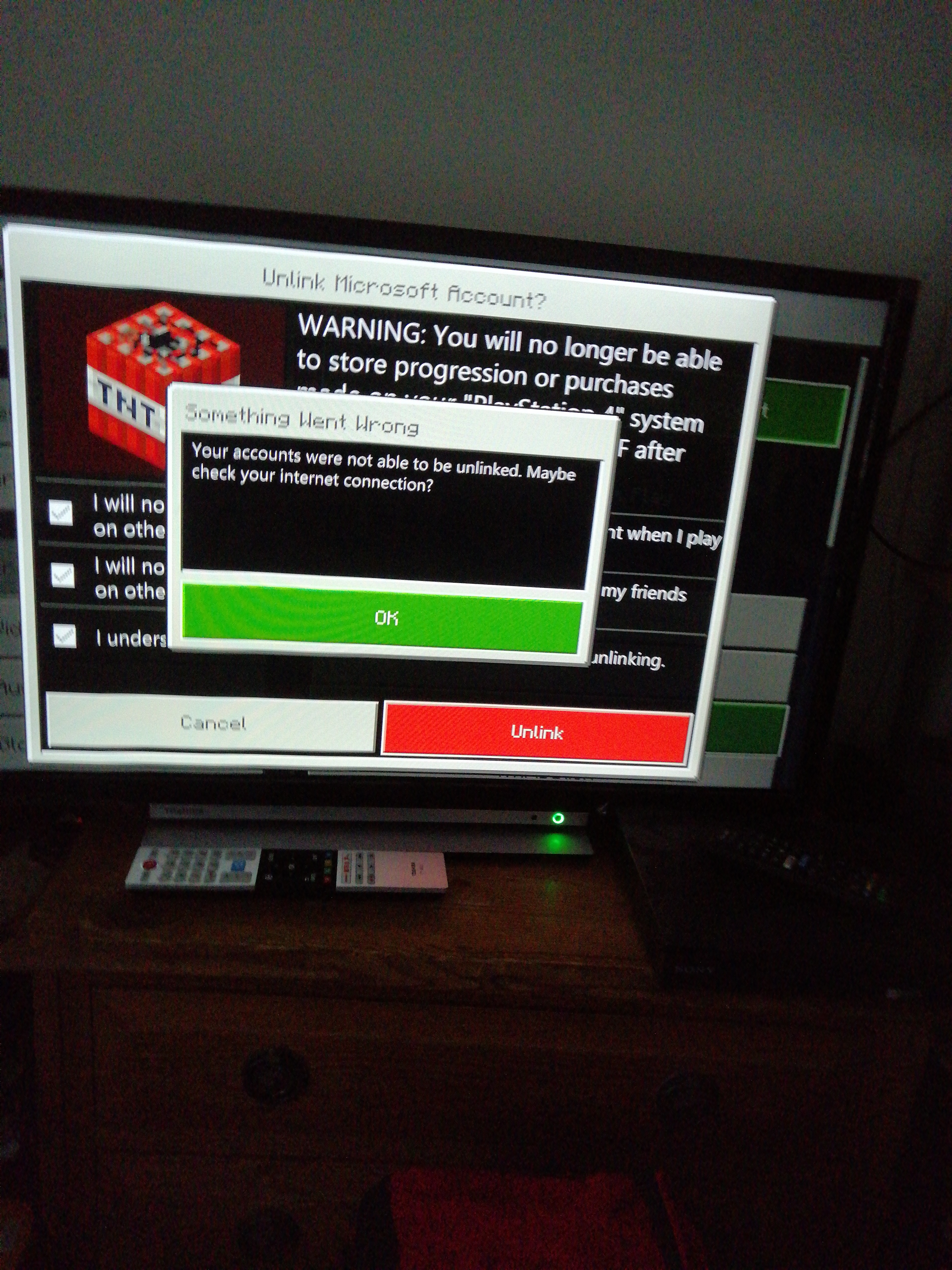 When we are signed in we can go to settings to unlink your Microsoft account from PS4 and when I do that and yes I do select all the options it lets me click on the unlink button so I do but it says it failed plz check your internet connection and I have WiFi on it plz fix it I want to link my Microsoft to my new PS4 account