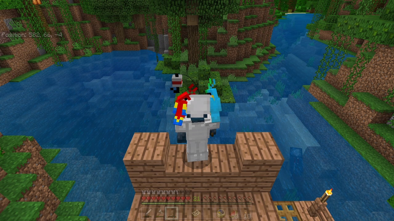 Sidenote: No matter how many times I repeat this, the parrots don't seem to get hurt, while if I were to catch them using the Fishing Rod, under normal circumstances, they would lose 1 point of health.