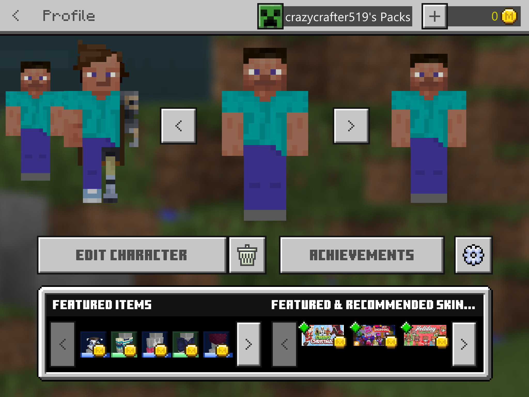 It starts with my character not showing up on the start screen, then I try to correct the error by going into the character creator. As shown all of my characters are gone, after I take the screenshot, all of my characters are in a loading state and I cannot switch between them. After that one character shows up and I leave, after that it displays two banners at the top saying "failed to load character (number)". After that I go back in and one of my characters is back, although my classic skin character is not there as he was in the spot taken by Steve to the far right. Interestingly my character that was restored displayed my founders cape although I was not able to assess that when It was glitched. while I was writing that the error appears to have been fixed. Before I wrote this I also tried restarting the game multiple times(even during what I was writing). Even though the game corrected itself a similar situation has happened before, albeit to a much lesser extent and restarting the game fixed that. I don't want to do this every so often with this glitch.