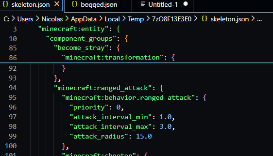 I want to add that in the post for version 1.21 for Bedrock, Minecraft says that the Bogged's attack will have a cooldown of 3.5 which is true, compared to the 2.0 seconds that the skeleton has, but looking at the creators files the minimum cooldown is 1.0 seconds. That change would be a huge relief for the early game.