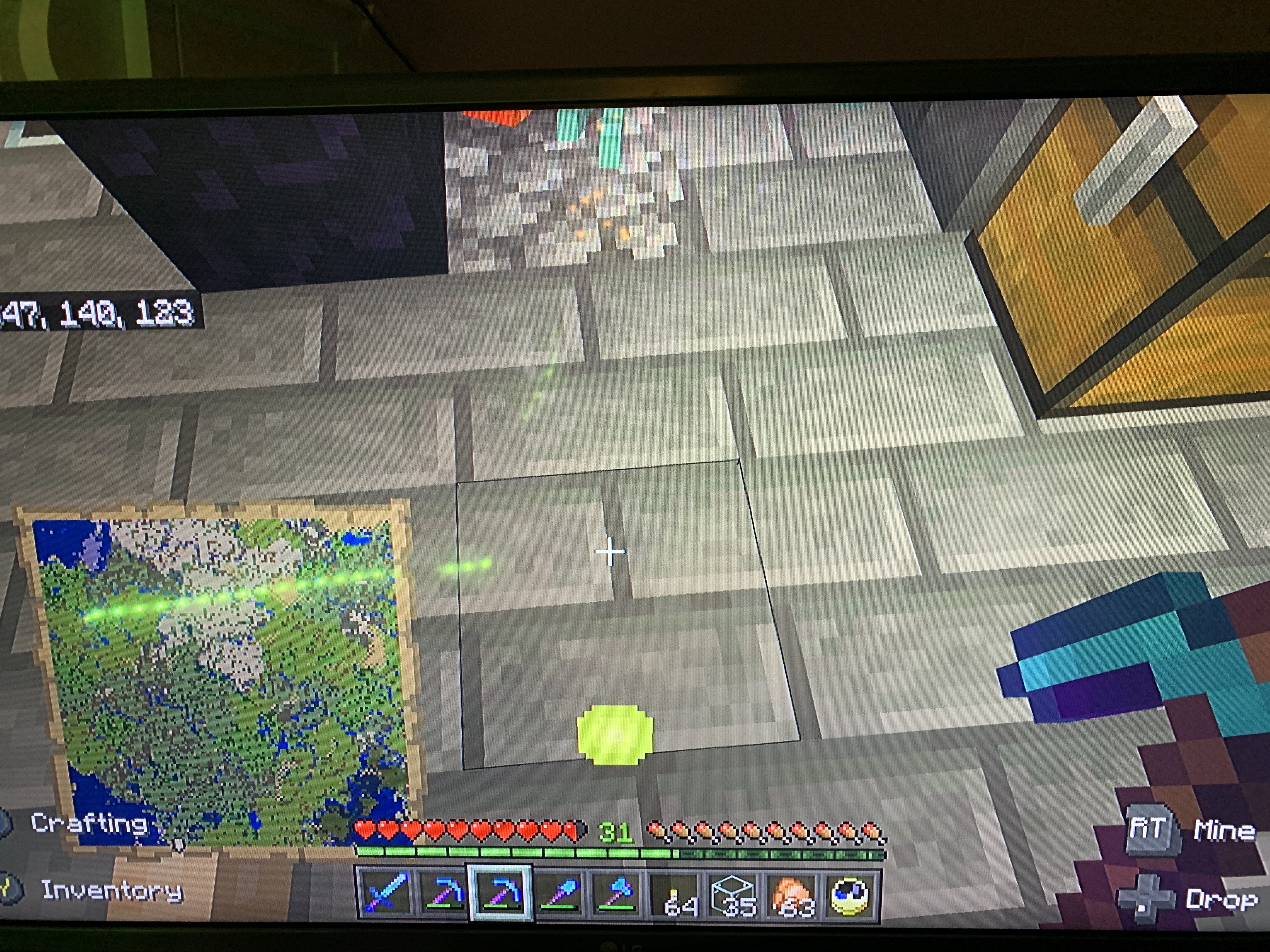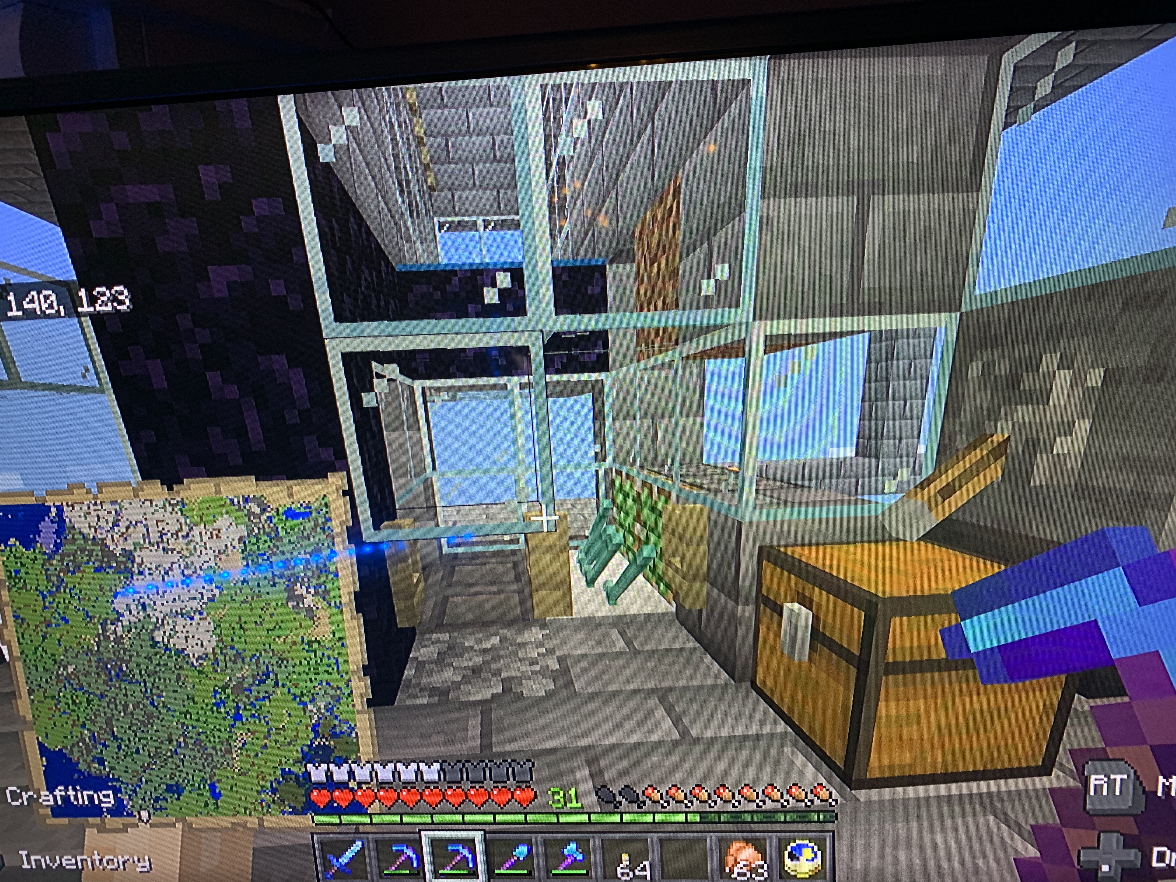 The other screenshot shows the setup of the area in which the mobs fall and are killed with the trident killer (when it works...there is another open bug here after all!)