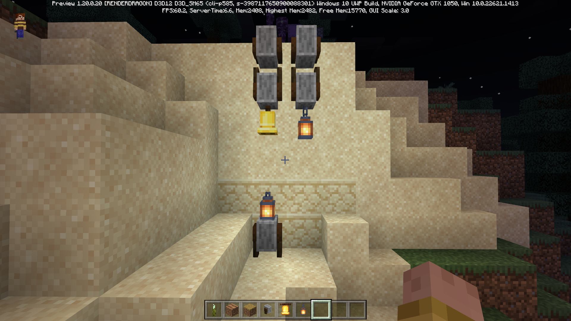 I've seen tutorials from many houses on YouTube made in Minecraft: Java Edition, which use this feature. I recently went to build a house with this feature in Minecraft: Bedrock Edition, and realized that it is not possible to place a lantern hanging on the bottom of a grindstone.