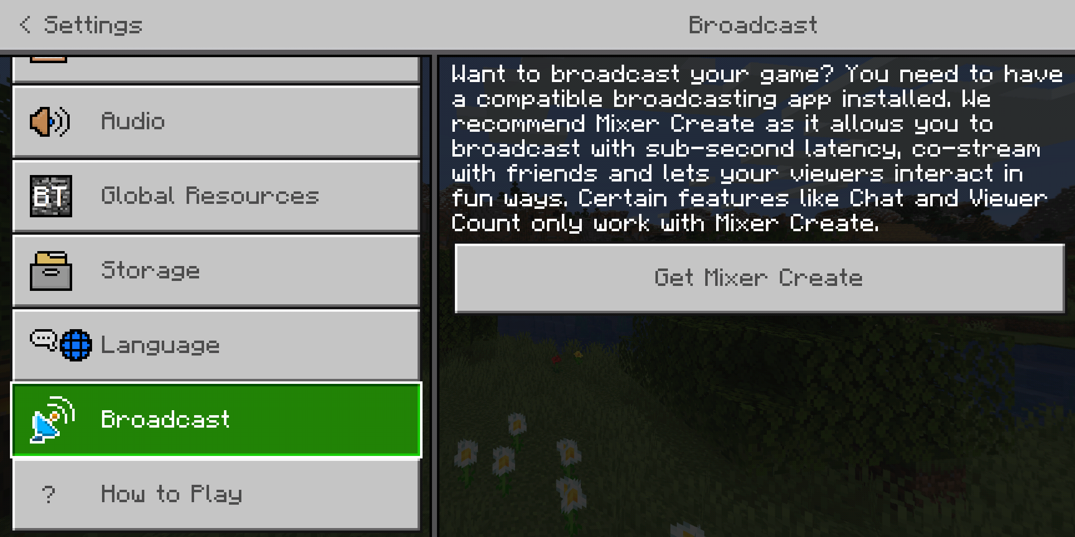 The settings broadcast tab for Minecraft Bedrock 1.14.1 references an app called Mixer Create that is recommended for broadcasting. However, the Get Mixer Create button links to an app that no longer exists. If a new app is recommended for this functionality, could the button be updated to link correctly? A manual search of the app store for Mixer Create likewise does not produce any results for that specific title.