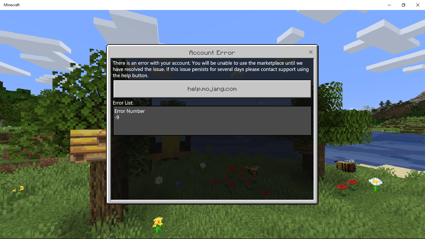 Some users report that account error -9 comes up randomly when launching Minecraft while online, and does not depend whether the internet connection is wifi or wired connection. (MCPE-63727)