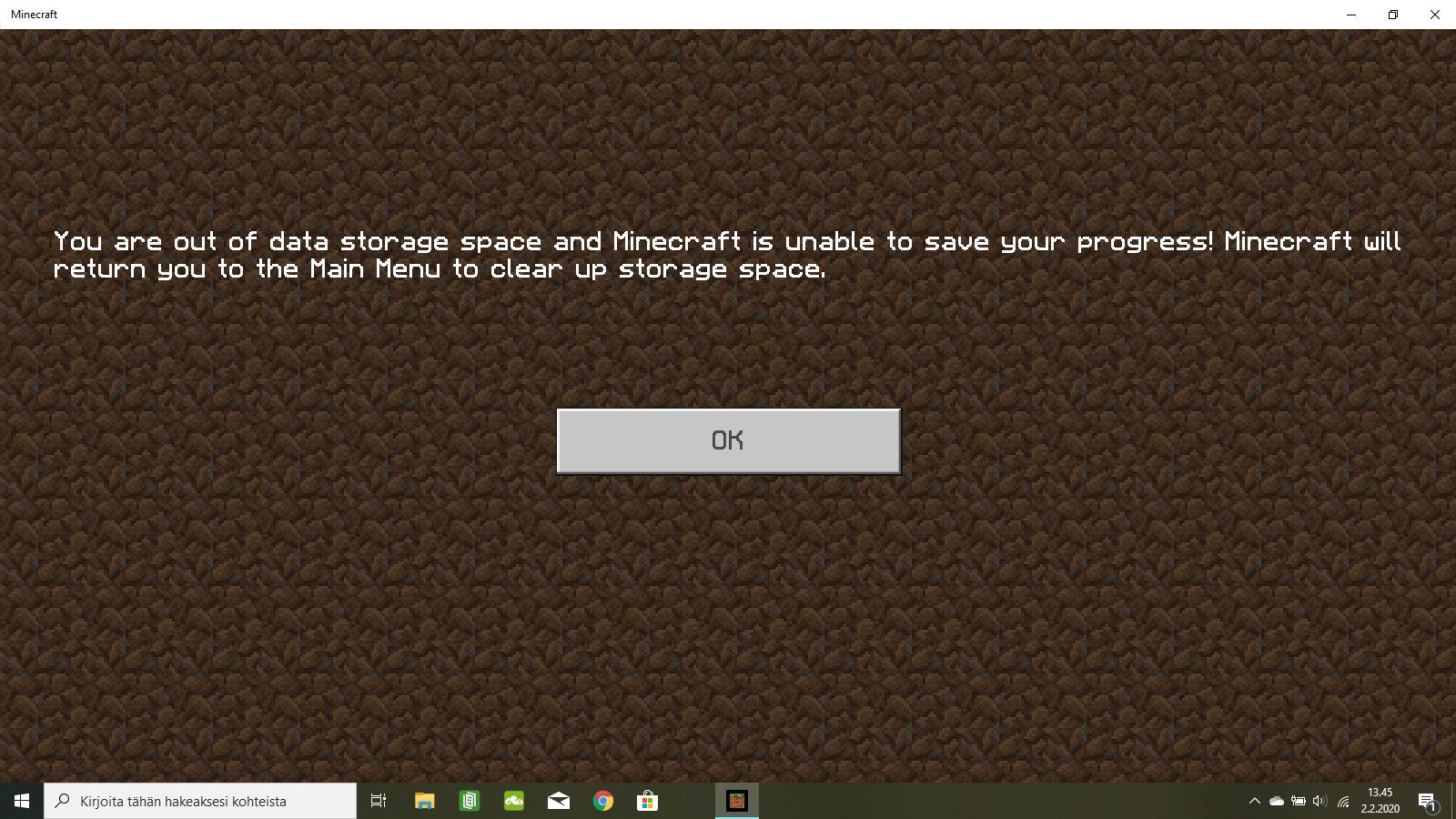 This happens every time I try to open my world. I have plenty of storage space left.