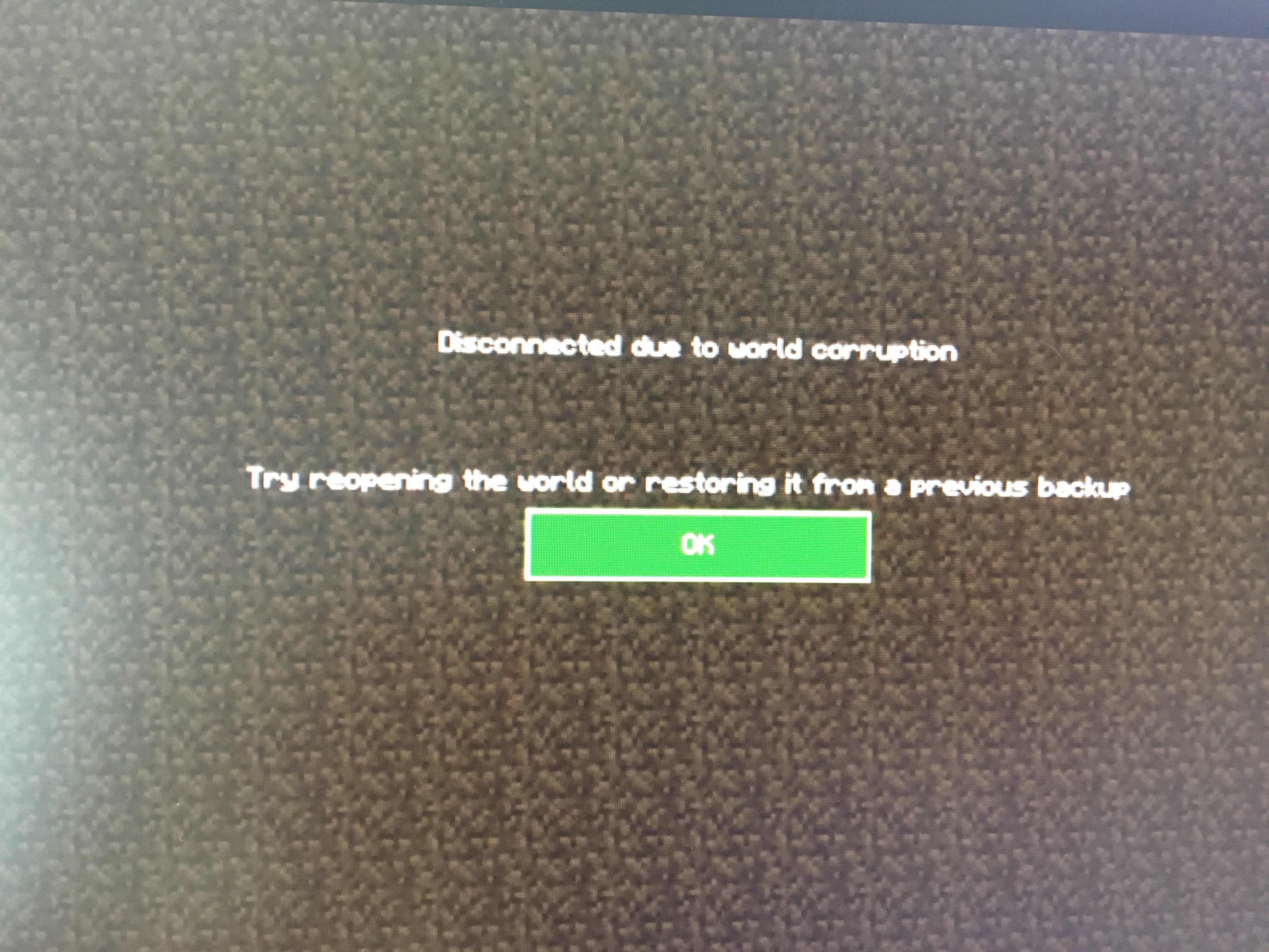 Whenever I get a "world corrupted" screen, the UI elements freeze until finally (after 5 minutes) it jumps back to the initial menu.