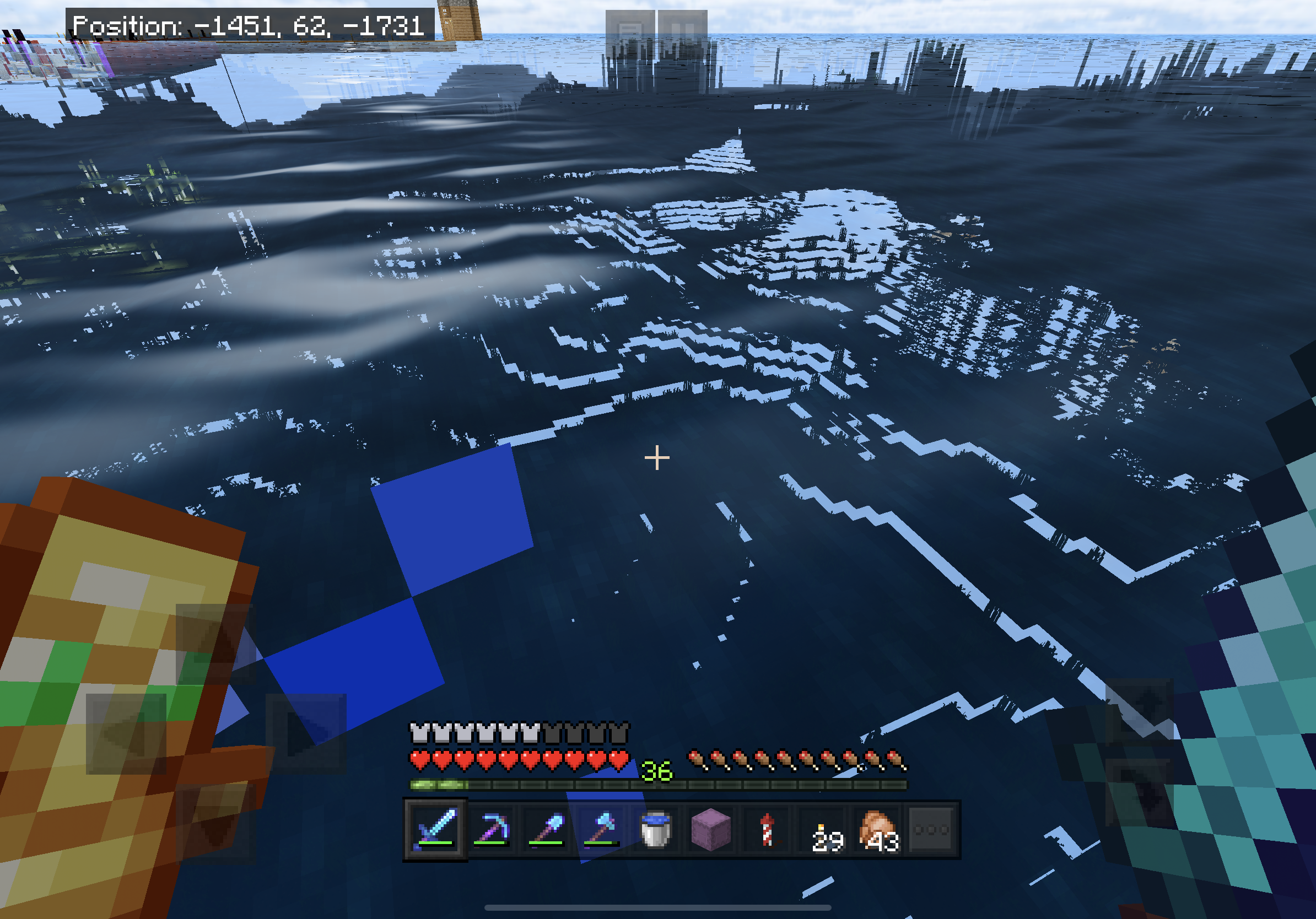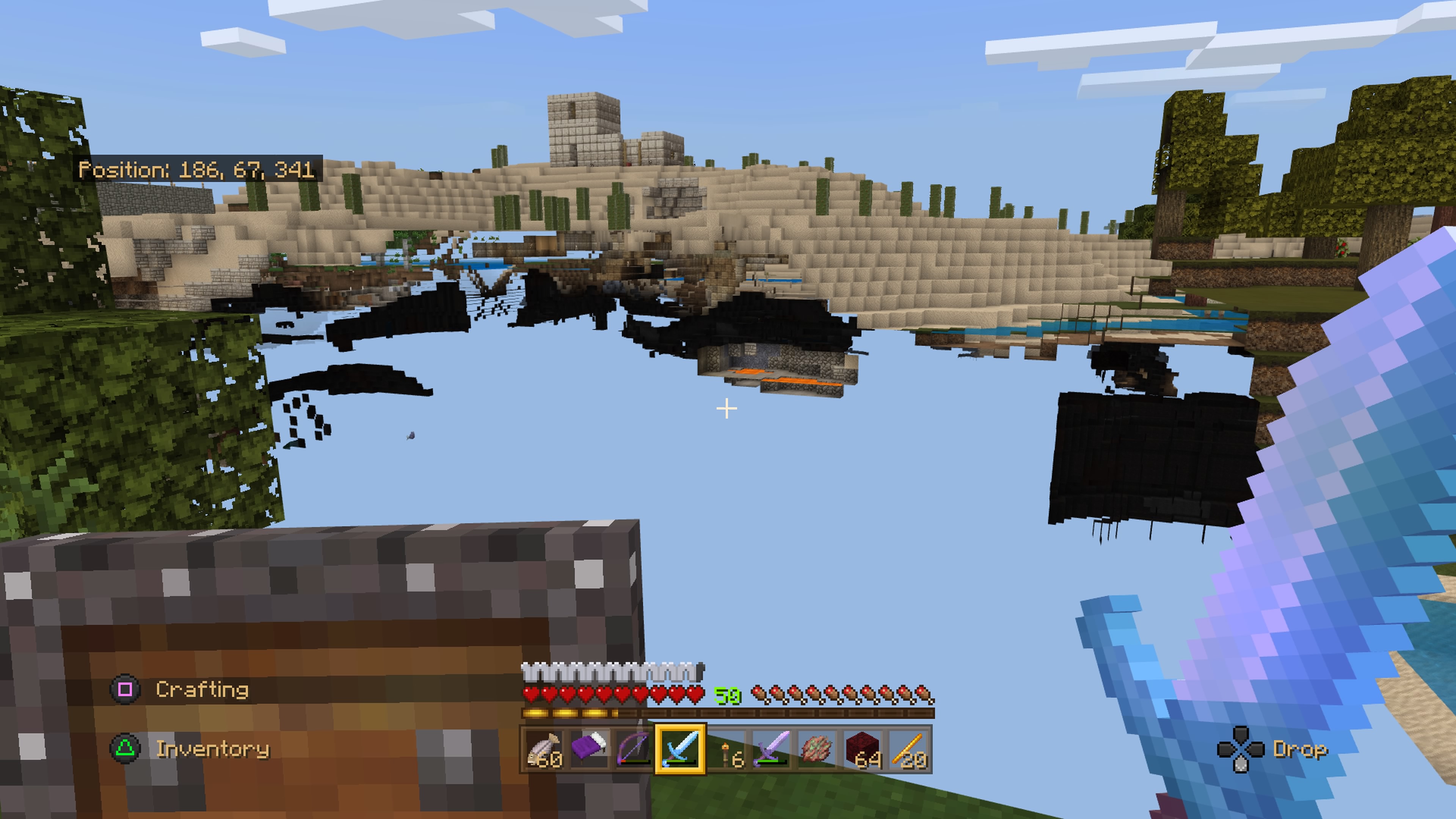 However, on leaving the nether, the first noticeable issue is that the 'building terrain' screen is visible for much longer than usual, as if the world is taking longer to load. Once the terrain has been built, and the screen returns to normal, huge chunks of the world are missing/invisible: