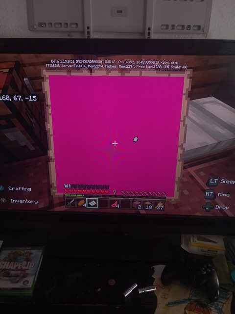 My map turned pink when I hit the side of a villager's house and the main screen had pink blocks over my worlds
