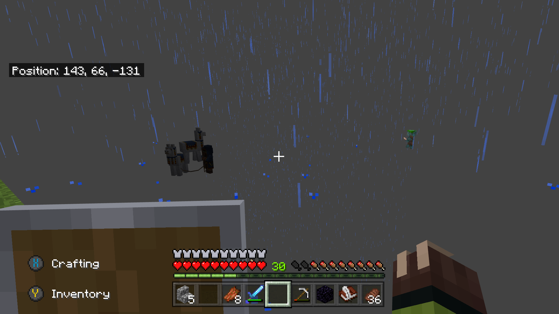 Some chunks that were visible before became invisible when I went into the Nether and came back to the overworld. The picture shows the aftermath of going into the Nether and back.