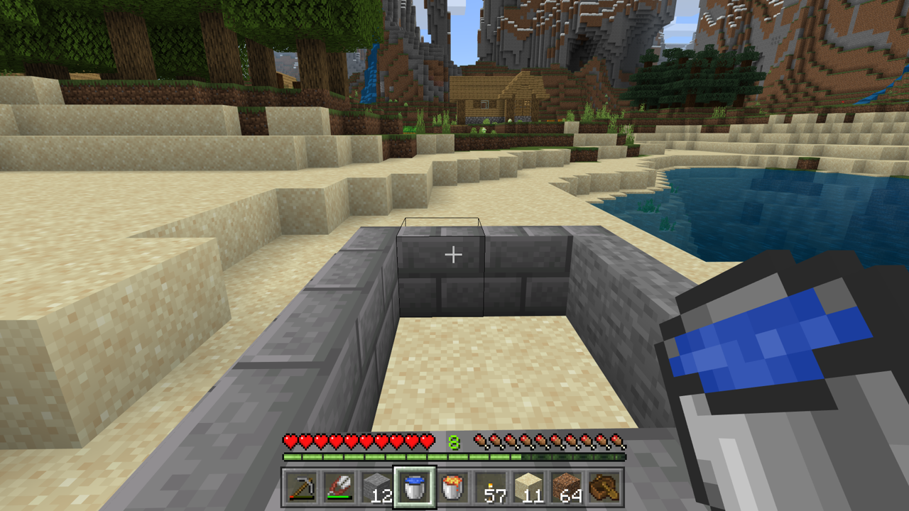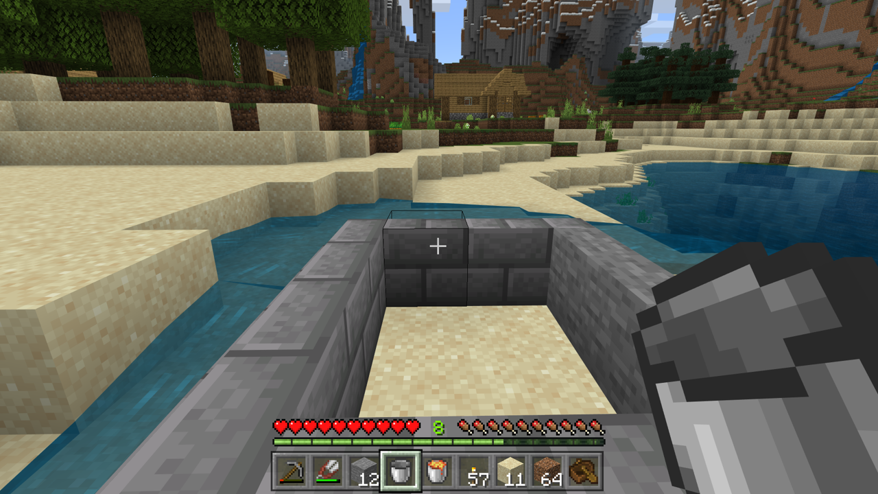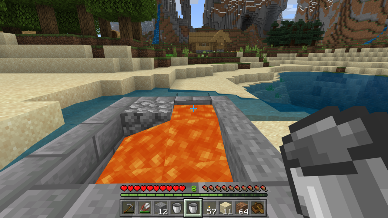As shown in the below screenshots, when placing water on the backside of stairs, the water flows through to the other side of the stairs rather than where it's intended to be. This happens both in creative and survival modes with an individual stair placed and when it's connected to other stairs (i.e. making a well). However, when placing lava, it works as I'd expect it to.