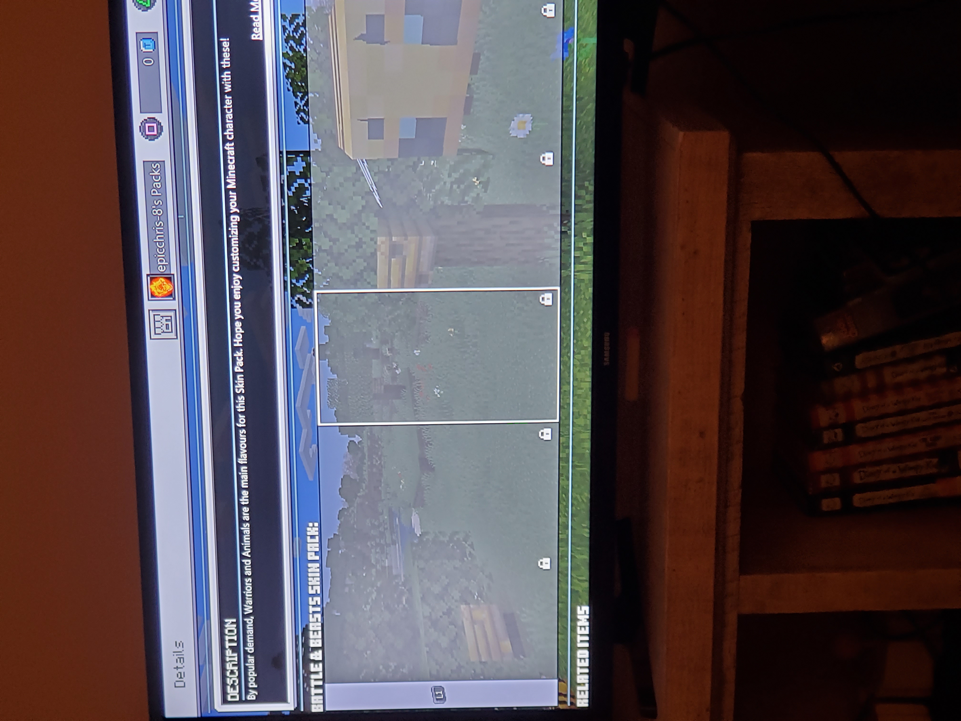 [media]Sorry if the image is not the right way, but basically, it says its locked, with a little lock icon, and shows no image at all. This happened with the Battle and Beast pack, but I don't know if it does the same thing with the other skin packs becuase I've never went into them since the issue. Please fix this.