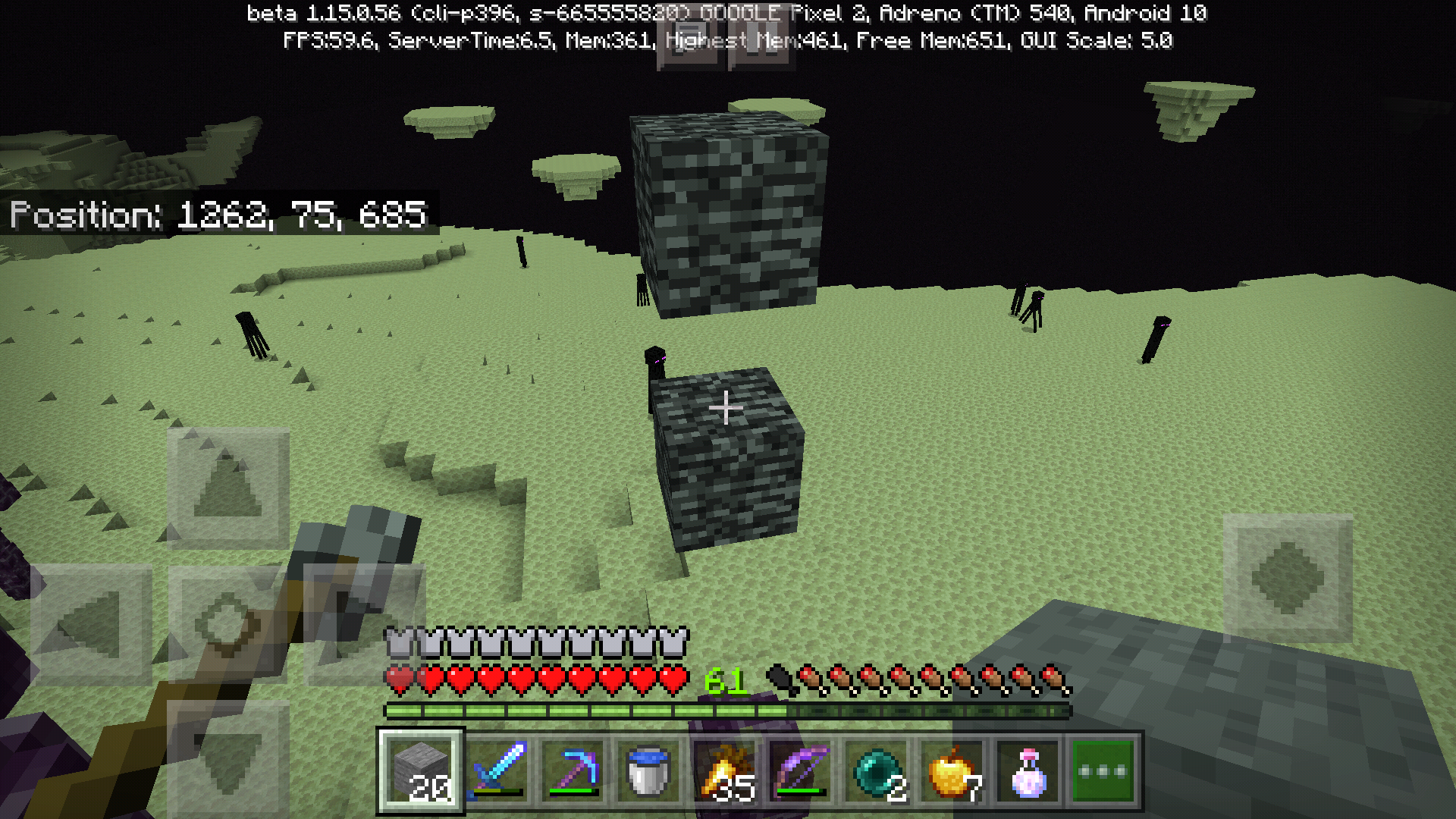 Sometimes an end portal gateway in the extended end does not generate the portal, only the bedrock surrounding it. Out of the 2 portals I found while exploring, I only saw one that was bugged like the image below.