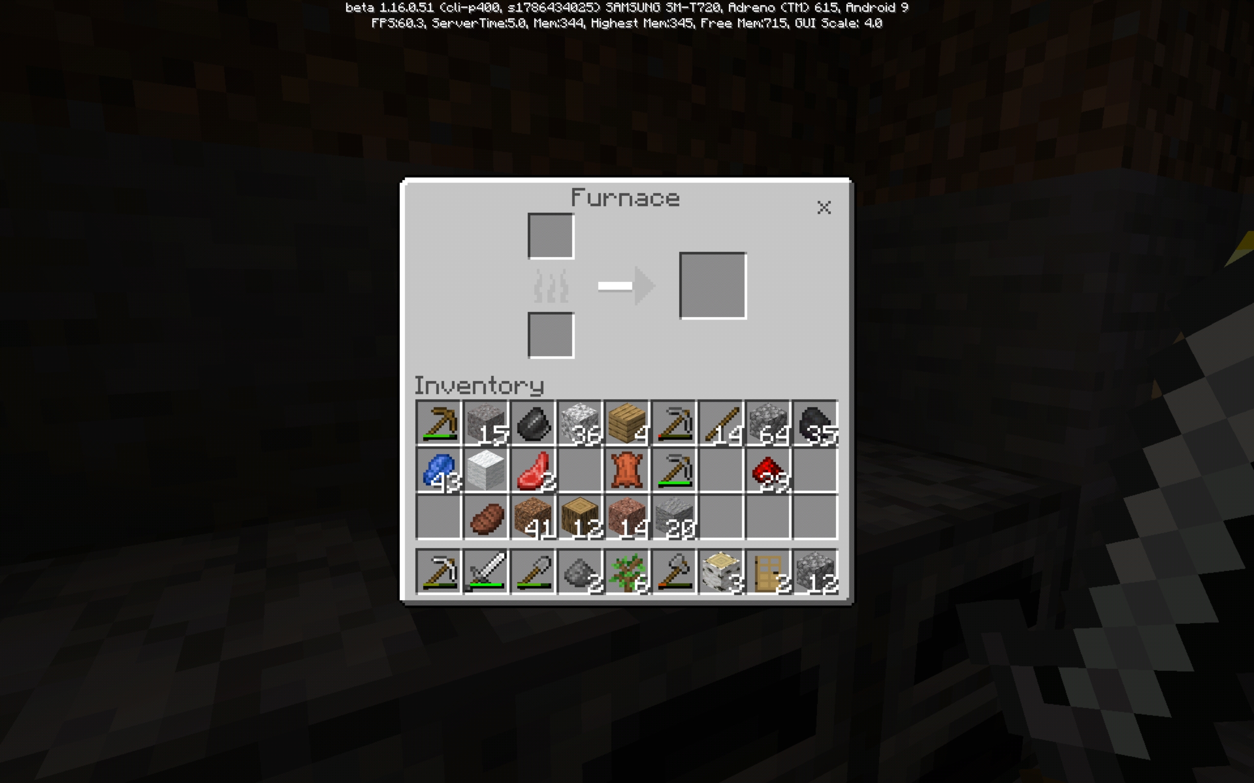 Opening the furnace UI after it is done smelting something presents the smelting-state arrow in a oddly mid-smeltage stage. It doesn't seem to affect the amount of items smelted (xp untested) and resets when you start smelting something else again. It doesn't happen when the fuel runs out with the UI still open.