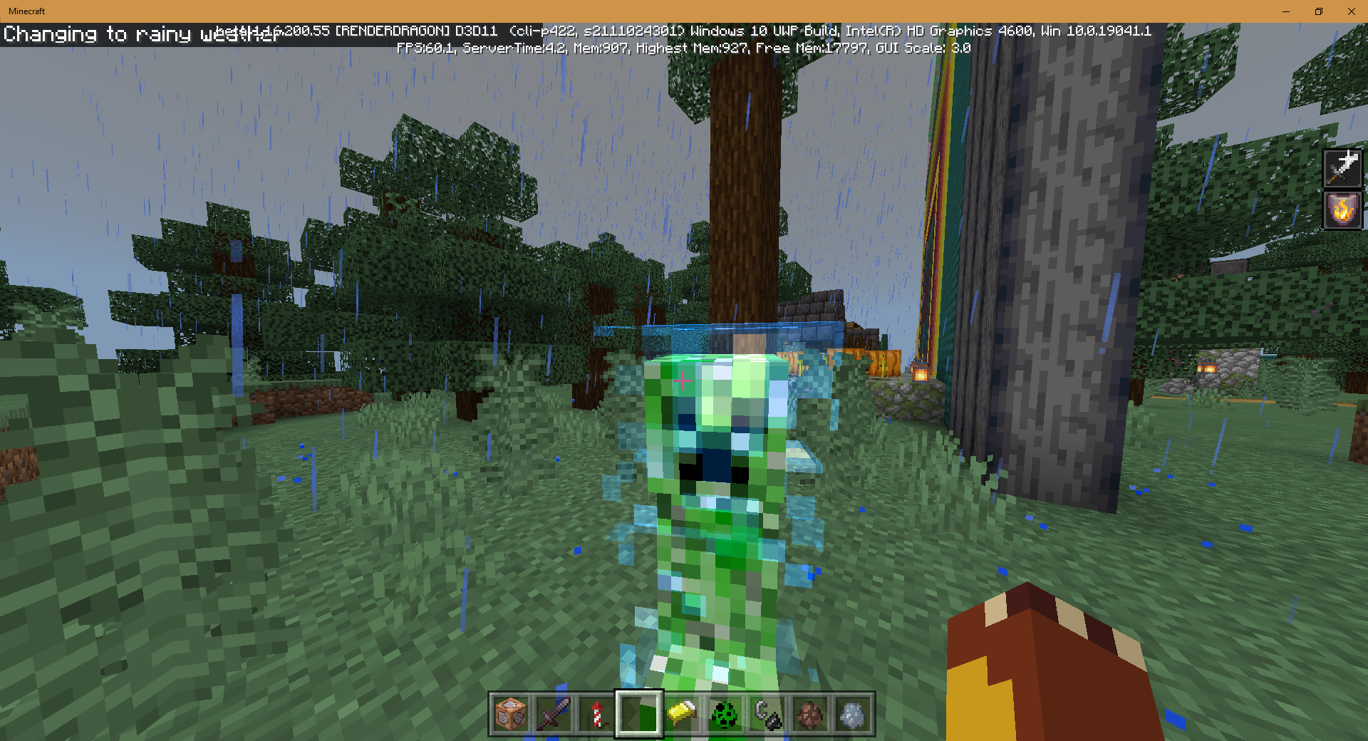 Transparent blocks and rain do not render behind the charged creeper's aura.