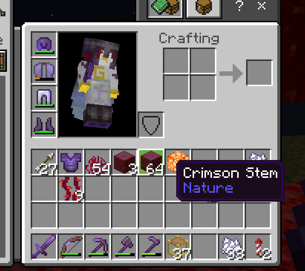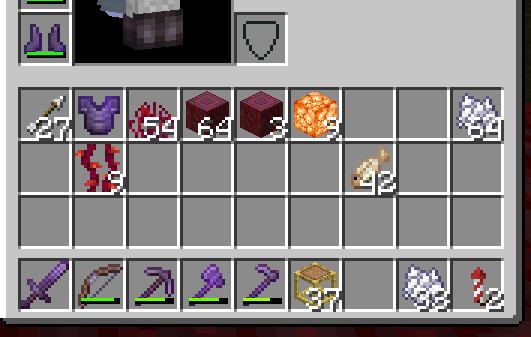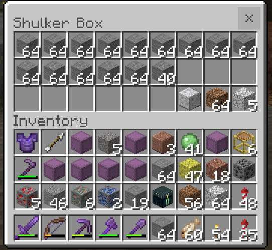 This image shows I had space to take the 5 in the shulker, but they would not move, and the 63 remained also.