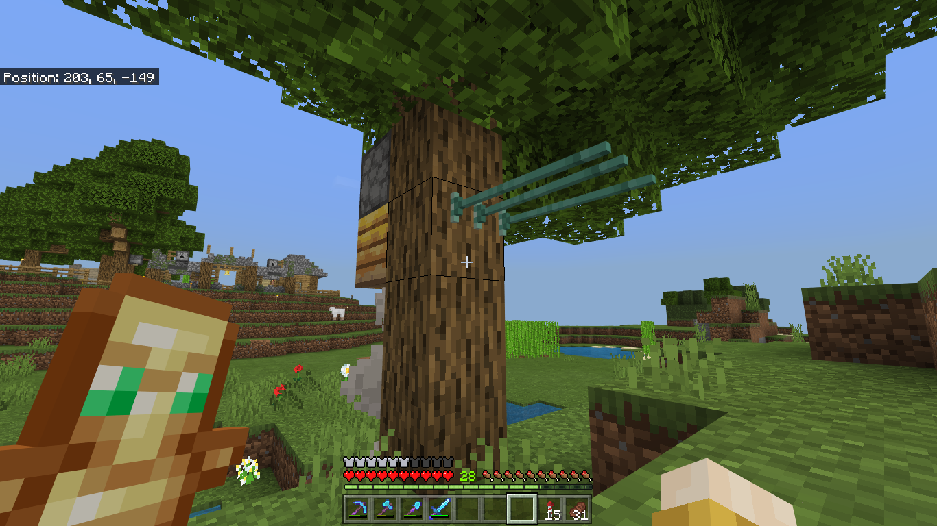 If you throw a trident at a block, you enter nether and come back, the trident will fall from the block (if it wasn't on top of it)