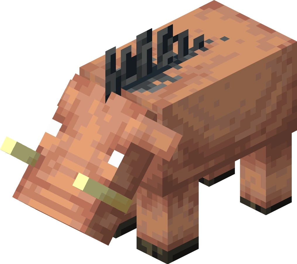 The hoglin's Bedrock Edition model (left) actually appears to be the correct one in comparison with Java Edition's (right), as it appears to be more pixel consistent (notice that the tusks, ears, and mane, for instance, actually align with the other pixels).