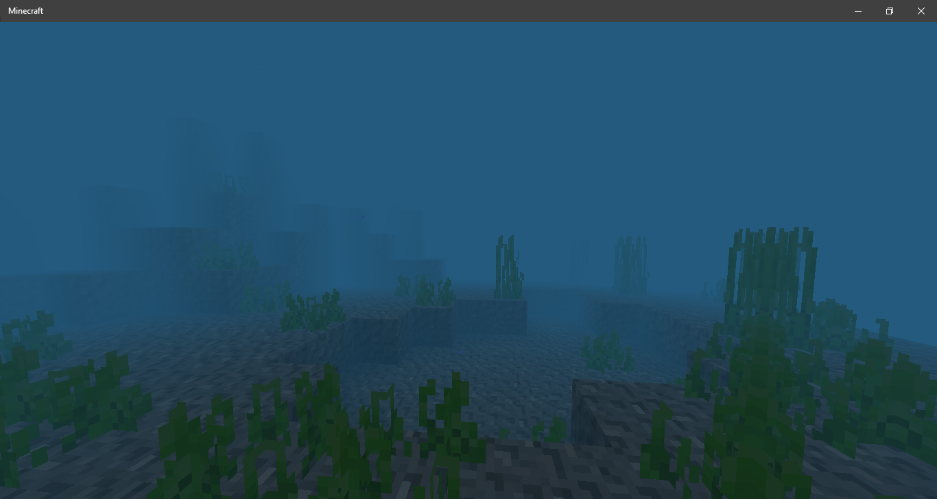 Hello, so the problem I am experiencing is that I cannot see underwater more than about 4 blocks in front of me, even with night vision. Previously, I was doing perfectly fine, I could see everything underwater. Screenshots will be below. Unfortunately, I do not have any screenshots of what it looks like normally underwater, but that can be seen easily just by going into a game. I did nothing out of the ordinary for this to happen, I only loaded into the game. The screenshot with the label of (9) is without night vision and (10) is with night vision.