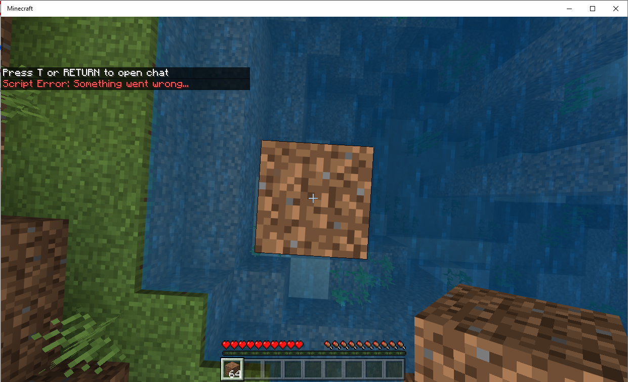 {{}}let serverSystem = server.registerSystem(0, 0); serverSystem.debug = function (msg) { let BroadcastEventData = serverSystem.createEventData("minecraft:display_chat_event"); BroadcastEventData.data.message = msg; serverSystem.broadcastEvent("minecraft:display_chat_event", BroadcastEventData); }; serverSystem.initialize = function() { serverSystem.listenForEvent("minecraft:block_interacted_with", (eventData) => serverSystem.checkBlock(eventData)); }; serverSystem.checkBlock = function (eventData) { const { block_position } = eventData.data; const { x, y, z } = block_position; const tickingArea = this.getTickingArea(); const block = this.getBlock(tickingArea, x, y, z); serverSystem.debug(JSON.stringify(block)); }; serverSystem.getTickingArea = function () { let tickingAreas = this.getComponent(server.level, 'minecraft:ticking_areas'); return tickingAreas.data['custom']; };