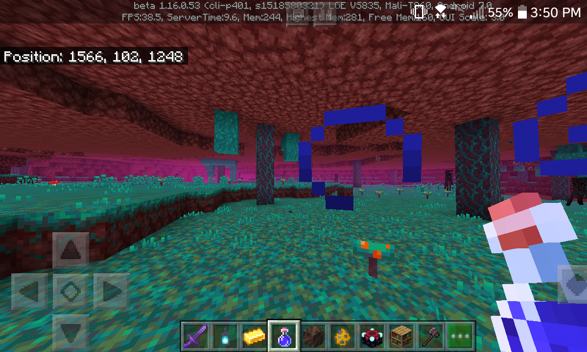 In world seed 1518580321 at coords 1564, 102, 1252, there are some warped "trees" that have generated into the netherrack ceiling of the area