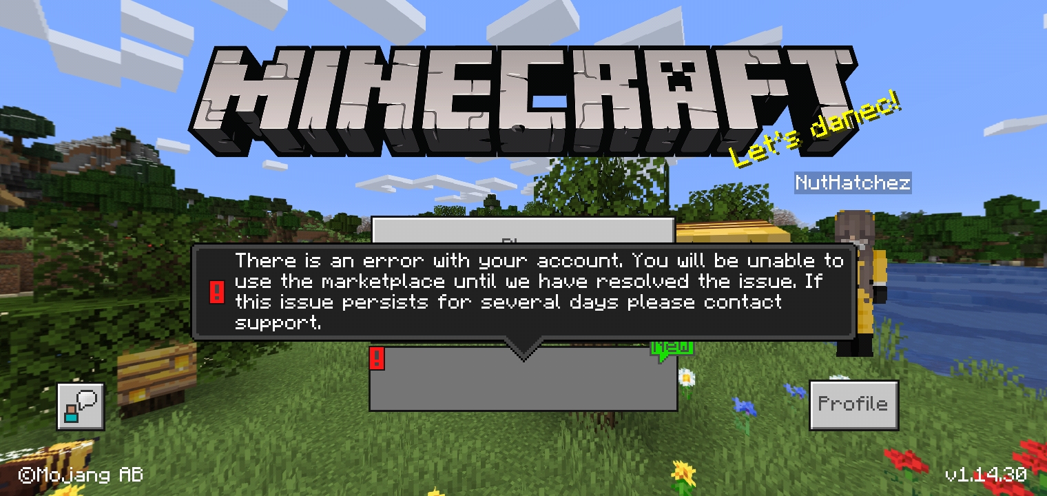 I can not open my purchases in Marketplace for a week already. And it says that there's and error with my account and that i have to wait until it resolved. And in the Marketplace box there's a red thing at the corner.