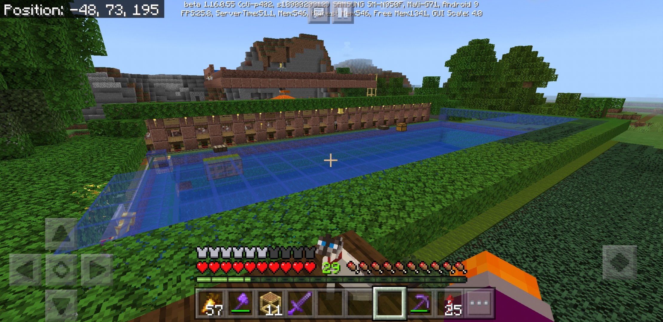 Each workstation is in front of the villager in one farm and villagers have free movement to pathfind in the other.