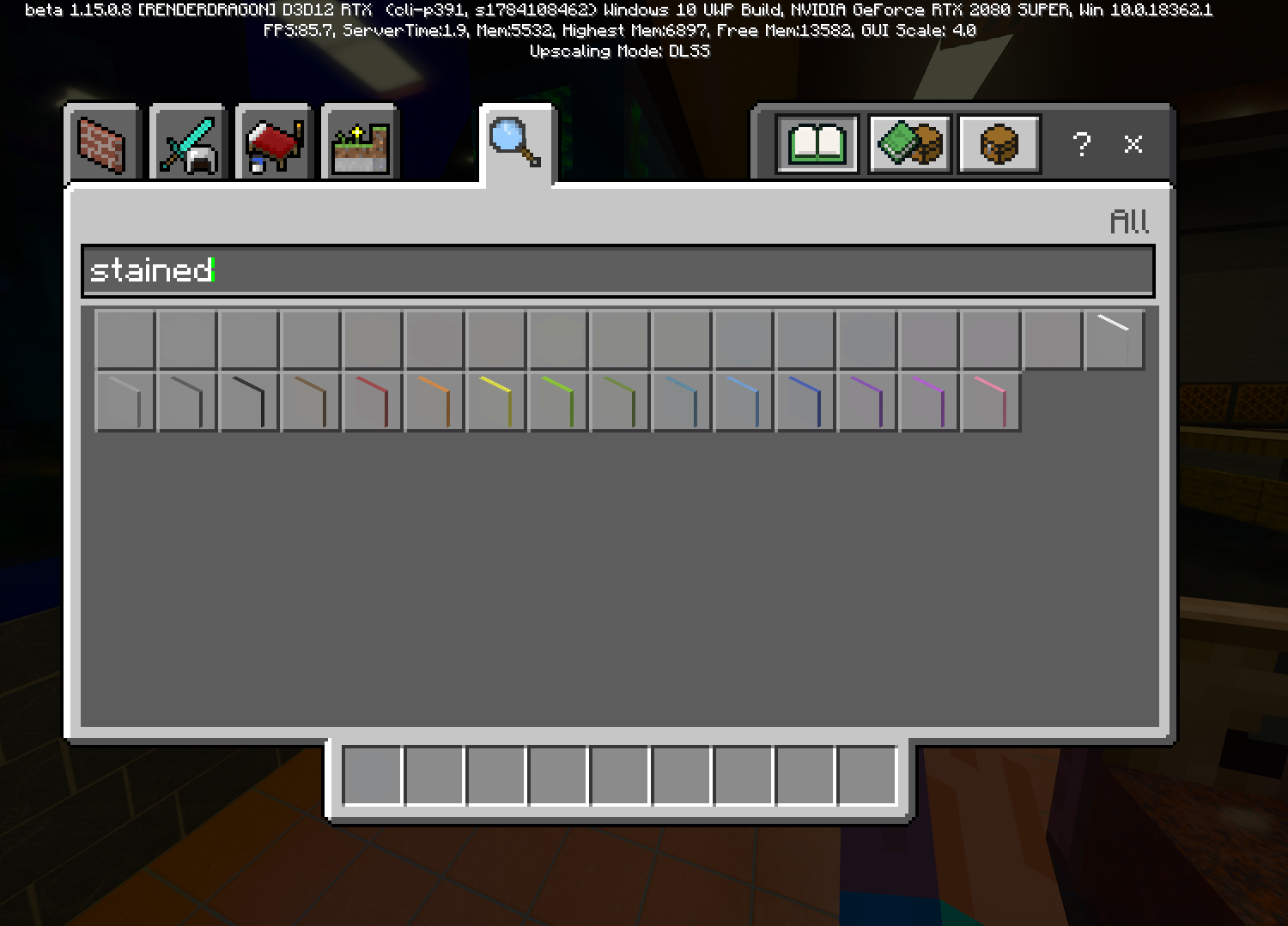 Stained glass blocks and panes don't appear properly as item textures. Stained glass blocks are entirely invisible and panes only show edge textures.