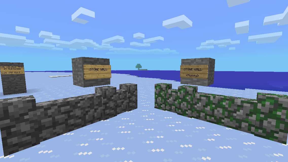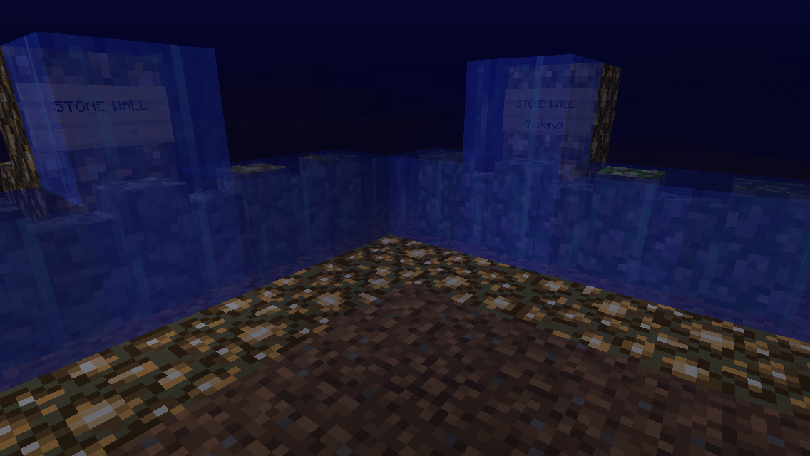 Upon building structures on Minecraft PE, I noticed that stone walls, both non-mossy and mossy, will not appear to be connected when placed underwater.