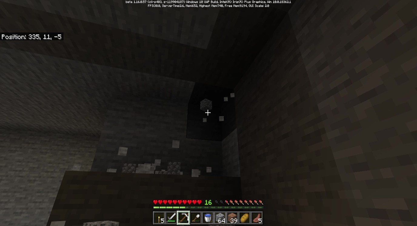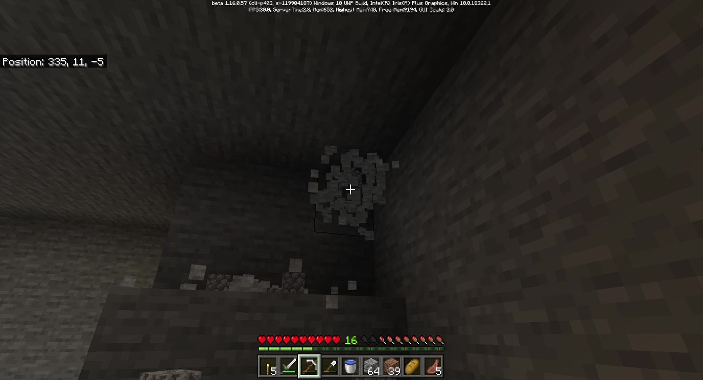 Sometimes while mining the ceiling of the cave flashes when I break a block. I included a couple pictures of the "flash" and the next frame after. it did this for a minute or two every time I broke a block.