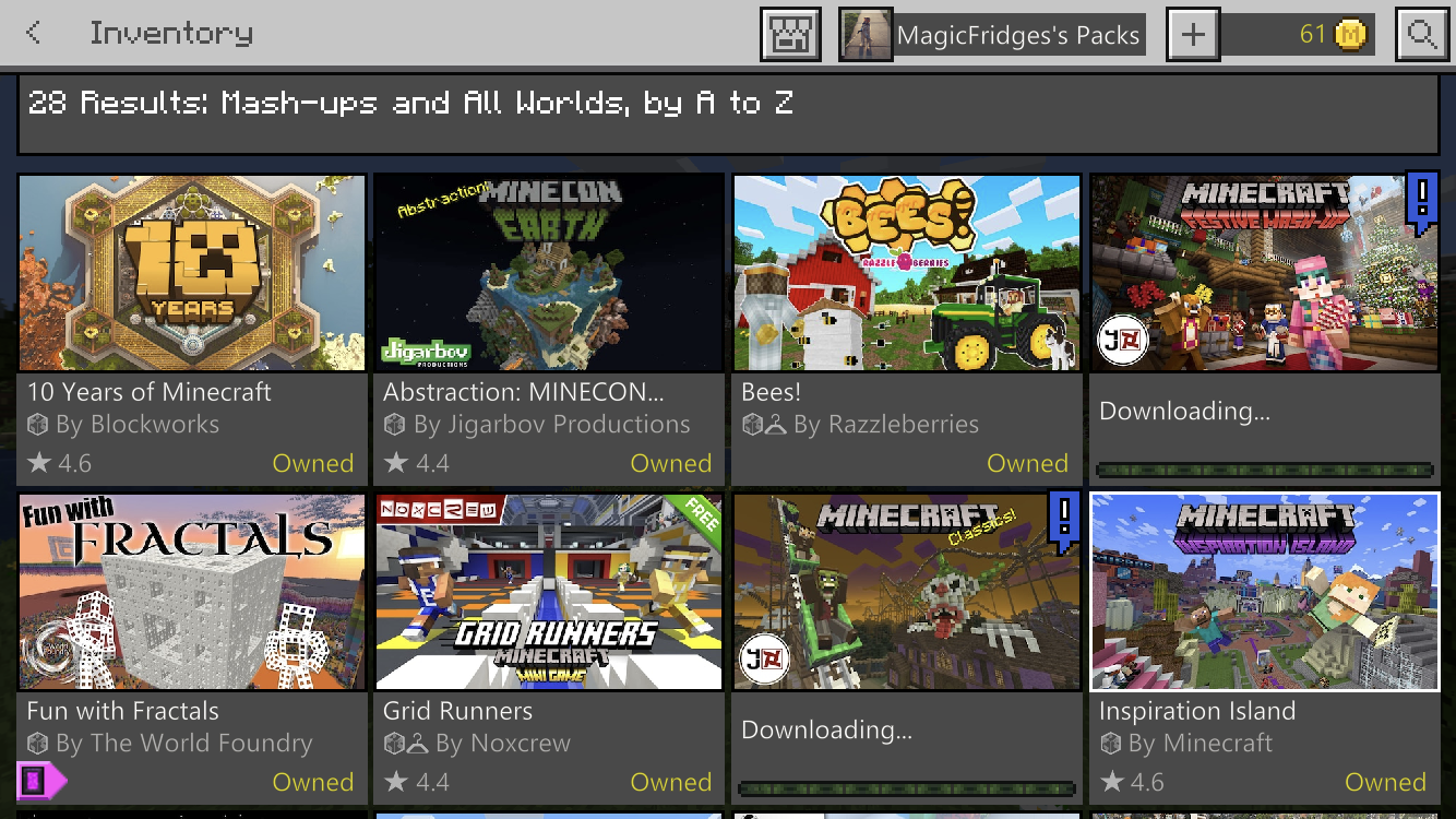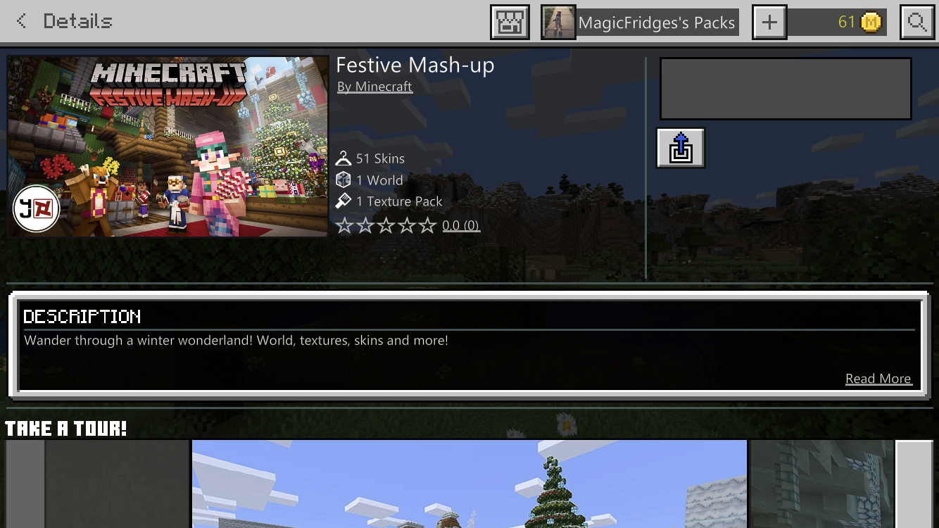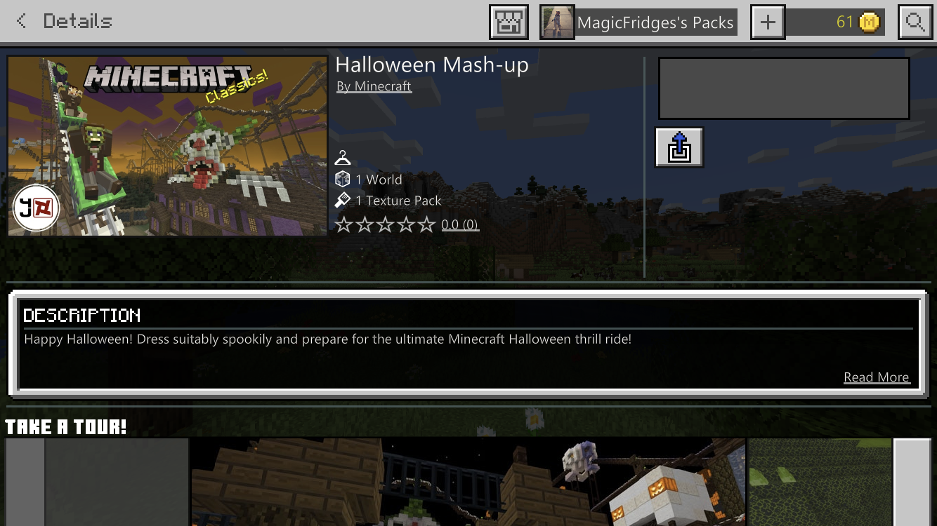 I bought the Festive and Halloween mash-up packs a while ago, now it won’t let me download the world for them. It gives an exclamation point and where it usually says “Create this World!” it’s blank. My other worlds are able to be downloaded though.