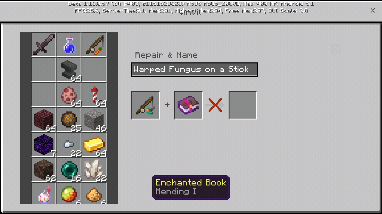 Place a warped fungus on a stick and Mending/Unbreaking book in the anvil